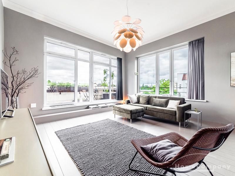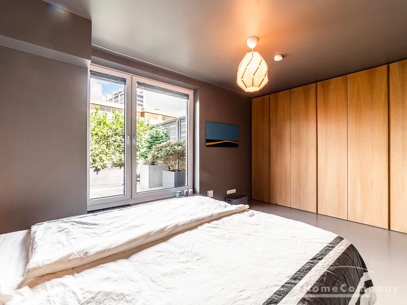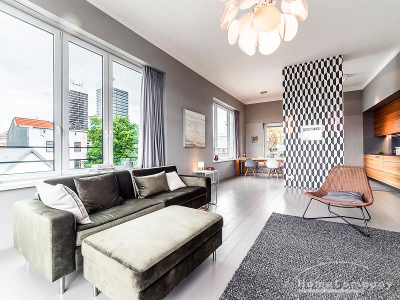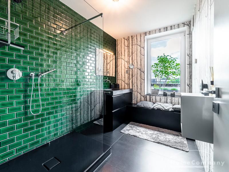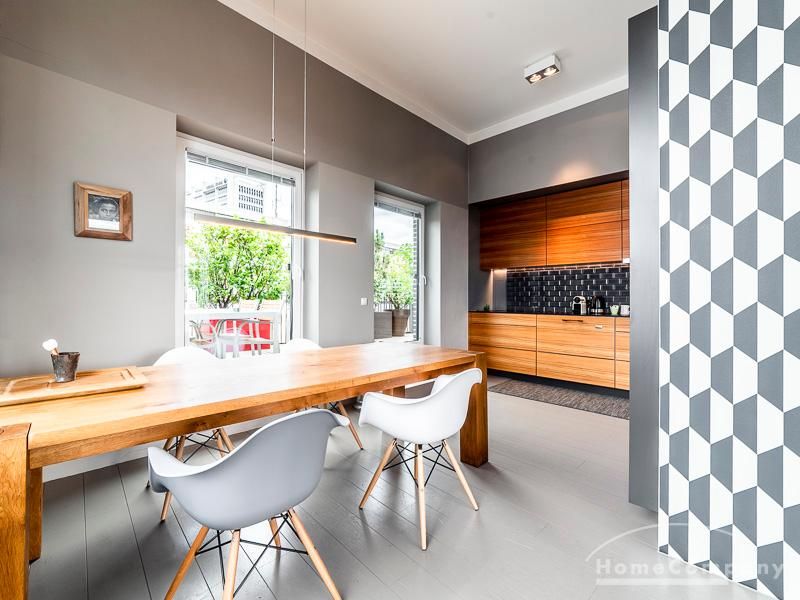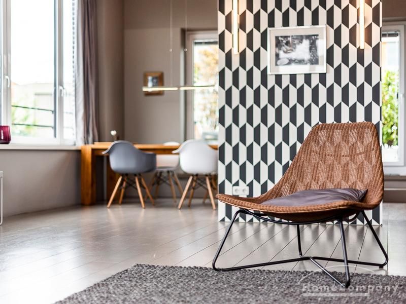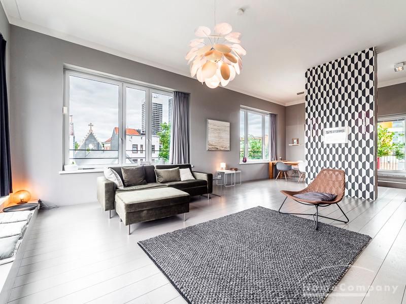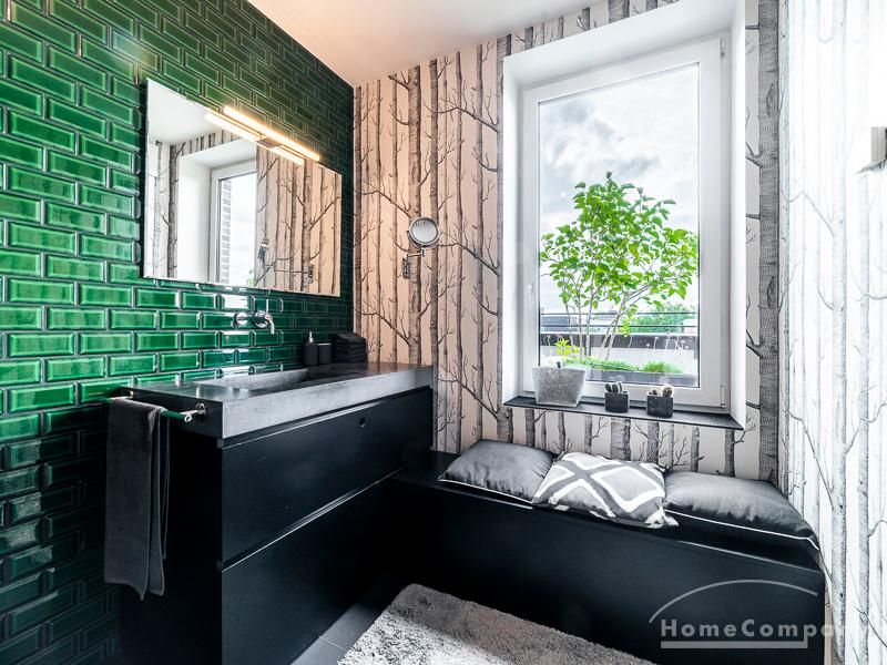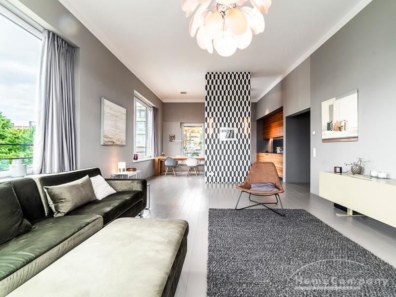 Luxuriöse Ausstattung und perfektes Design bestimmen den Stil der Wohnung und ergeben ein cool- komfortables Wohlfühlambiente. Grauer Designboden in Verbindung mit modernen Tapetenmustern und ruhigen Wandflächen stehen im Kontrast zu einzelnen Bildern und einem warmen Holzton in der durchgehenden Maserung der Küchenfront. Weitere Küchenelemente sind beinahe unsichtbar in eine Säule integriert. Der Wohnbereich ist sehr modern eingerichtet. Ein HD-TV (50 Zoll) steht zur Verfügung. Highspeedinternet 100 Mbit. Die beiden reich bepflanzten Dachterrassen sind vom großen Wohnraum mit Küche und Essbereich aus erreichbar. Eine automatische Bewässerungsanlage versorgt die Pflanzen, so dass man die kleine grüne Oase unbeschwert genießen kann. Das Schlafzimmer ist mit einem 1,60 m breiten Doppelbett ausgestattet. Zusätzlich steht ein Gästezimmer mit einem 0,90 m breiten Bett zur Verfügung. Ein großer Tiefgaragenstellplatz ist im Mietpreis inbegriffen.Vor dem Mietbeginn ist ein Reinigungsdeposit in Höhe von 5,50 €/m², jedoch mindestens 250,00 €, zu entrichten.Virtuelle Wohnungsbesichtigung mit 360° Rundumansichten: http://panocreator.com/view/gallery/id/VRKMTAngaben zum Energieausweis nach § 16a EnEV 2014: Art des Energieausweises: Energiebedarfsausweis Wert des Endenergiebedarfs: 53,5 kWh/(m²*a)Wesentlicher Energieträger für die Heizung des Gebäudes: FernwärmeGebäudebaujahr: 2010