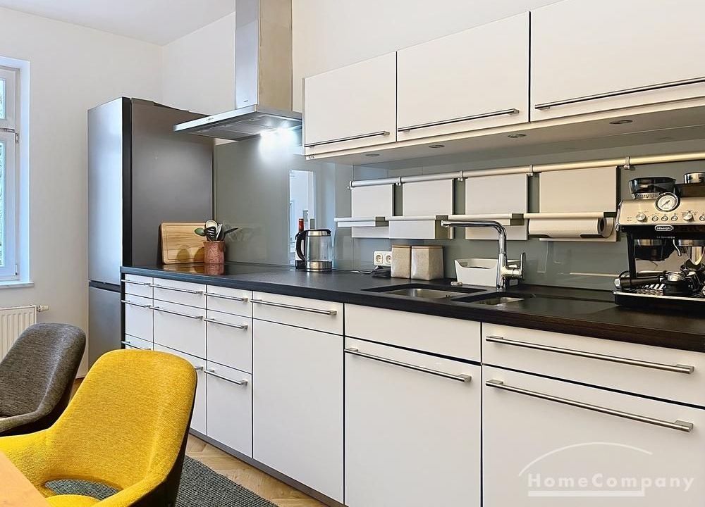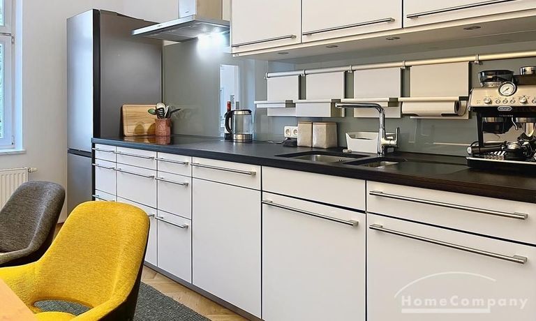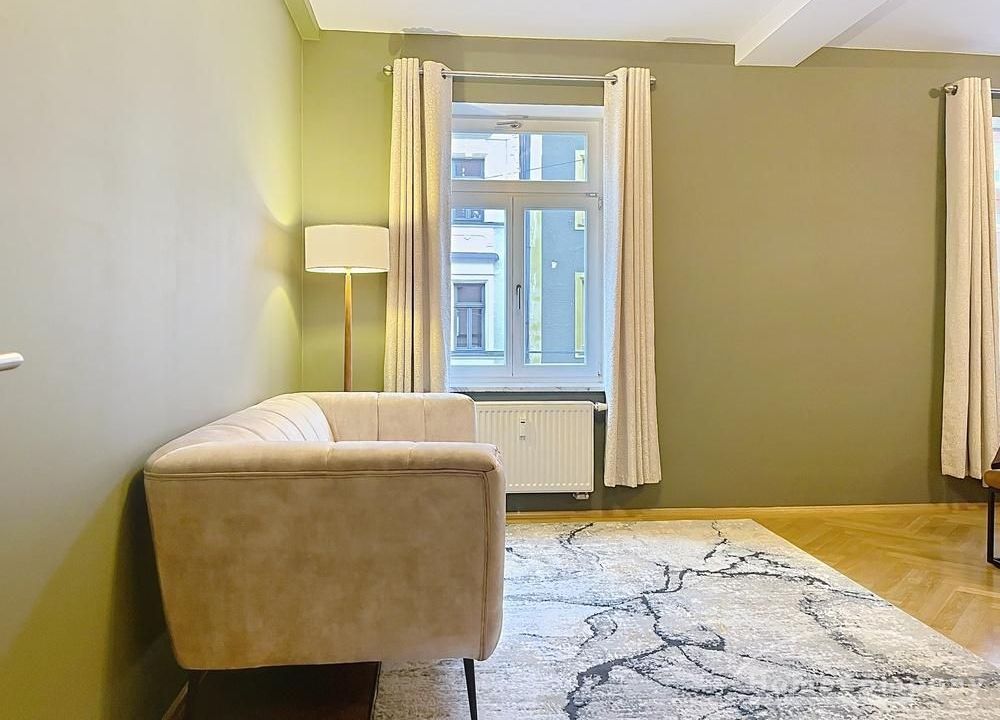 Die Wohnung besticht durch ihre luxuriöse, extravagante Möblierung, moderne Tapeten und ein stimmiges Designkonzept, das höchsten Wohnansprüchen gerecht wird.