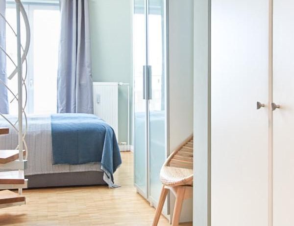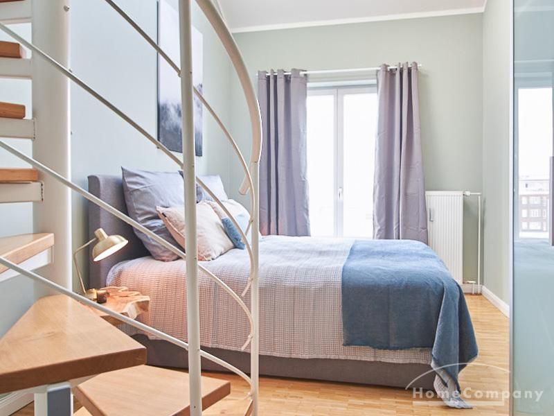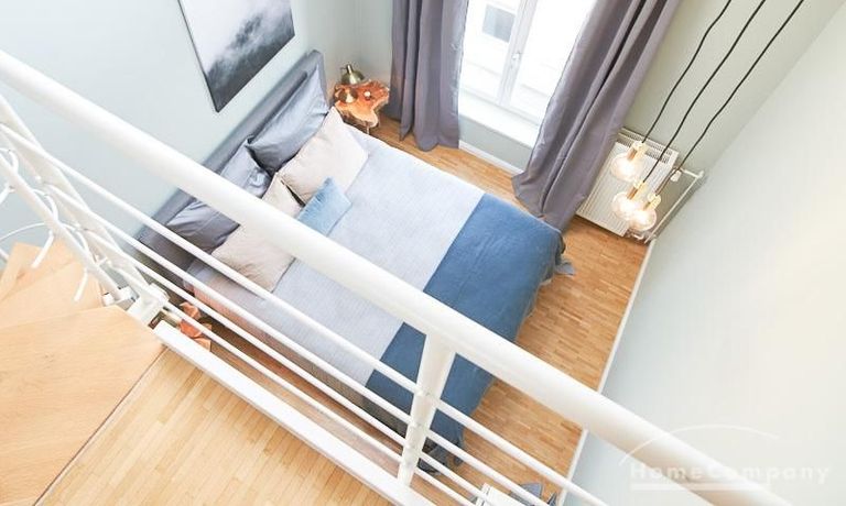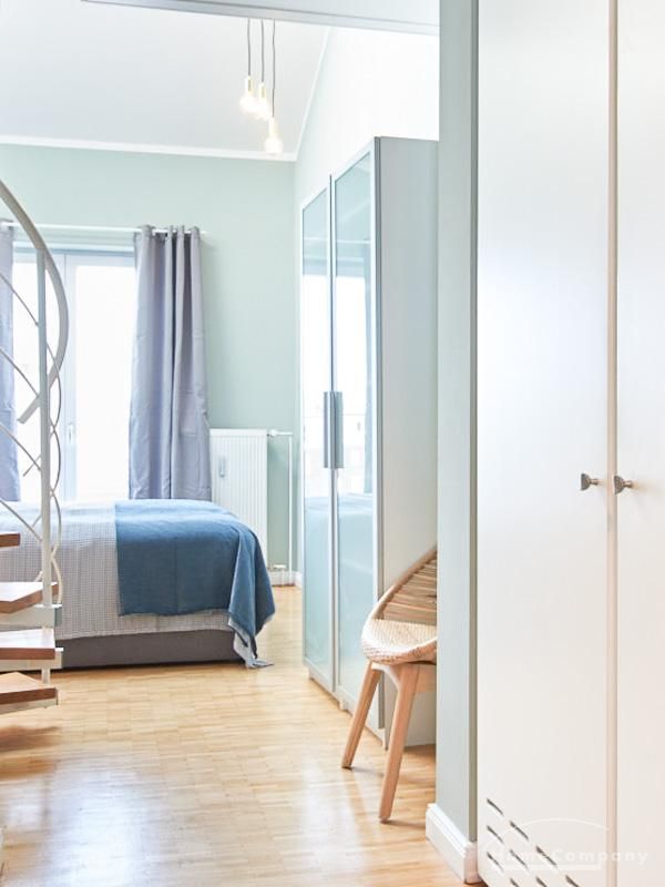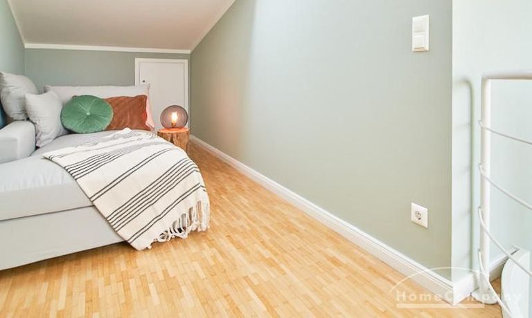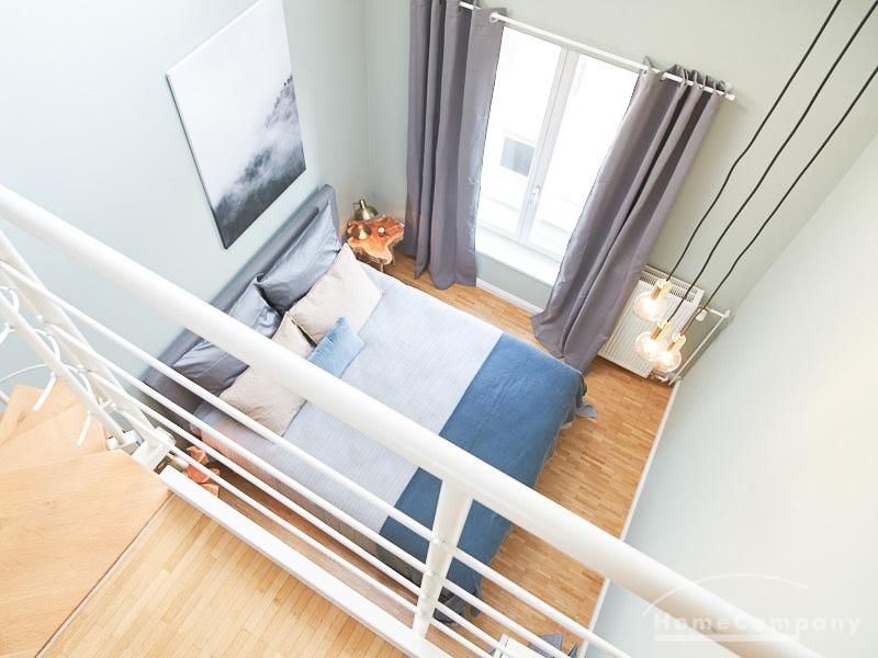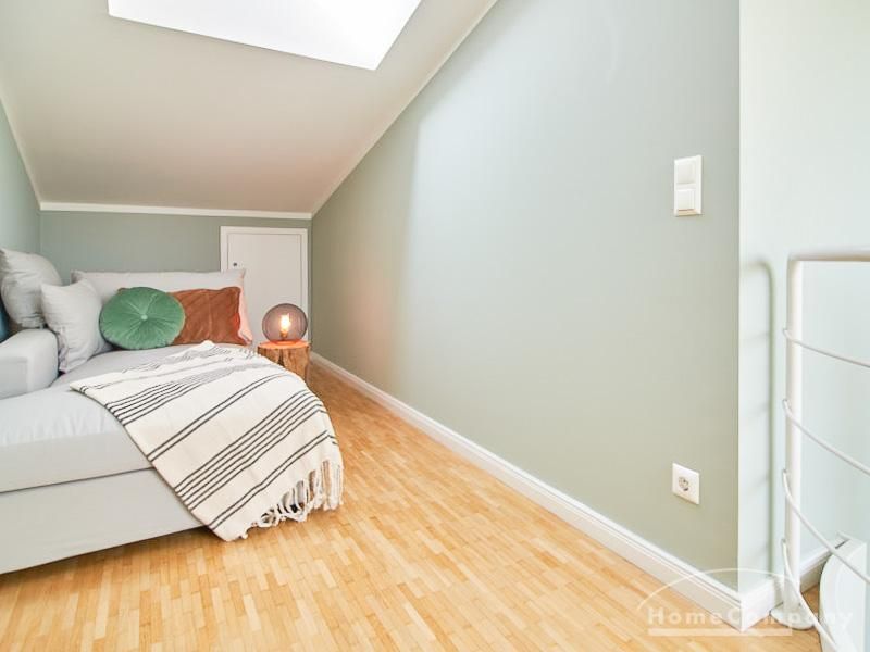 Die in 2019 neu ausgestattete Galeriewohnung, über 2 Ebenen mit Eichenparkett, besticht