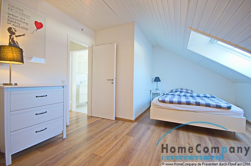 The apartment is fully furnished with high quality fittings and furnishings. The kitchen offers an induction hob, extractor hood, microwave, fridge, dishwasher and much more. The living area also offers a dining area for up to four people, a high quality sofa and an armchair. A low display cabinet houses a flat-screen TV with cable reception. The bedroom is furnished with a bed (1.60m x 2.00m) and a spacious wardrobe. The well-lit bathroom offers a window and shower. A washing machine and dryer can be found in the building’s cellar. Wi-fi internet access. Balcony.