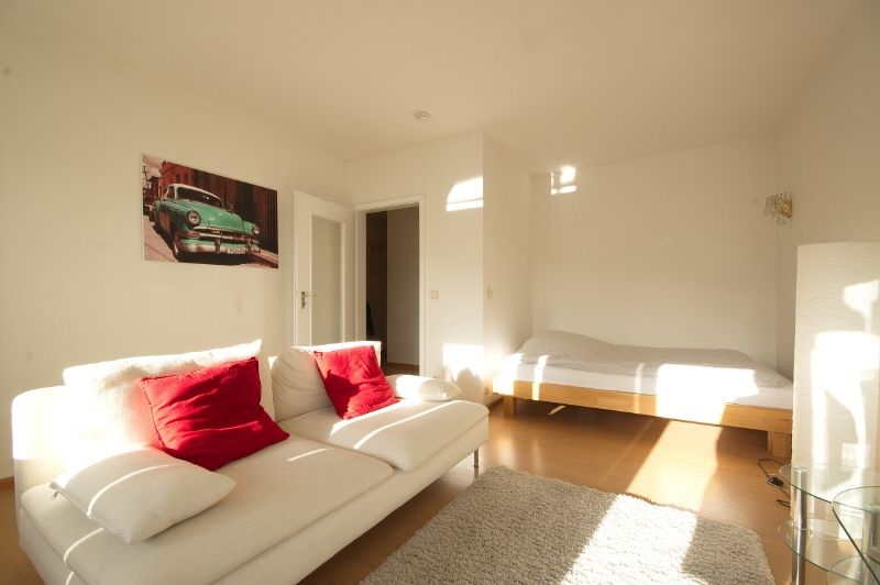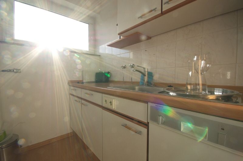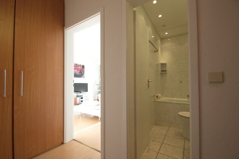 Modern gestalteter Wohnschlafraum, welcher mit einem 1,60 x 2 m großen Bett, Sofa, Flachbildfernseher mit Sat-TV und einem Essbereich für 2 Personen ausgestattet ist. Zugang zu einem kleinen, gemütlichen Balkon. Separater Kochbereich mit Einbauküche, diese beinhaltet eine Spülmaschine, Kühlschrank, Kaffeemaschine, Geschirr, Besteck etc. Ein hell gefliestes Wannenbad mit Duschvorhang gehört zur Wohnung. Münzwaschmaschine im Haus. Internet vorhanden