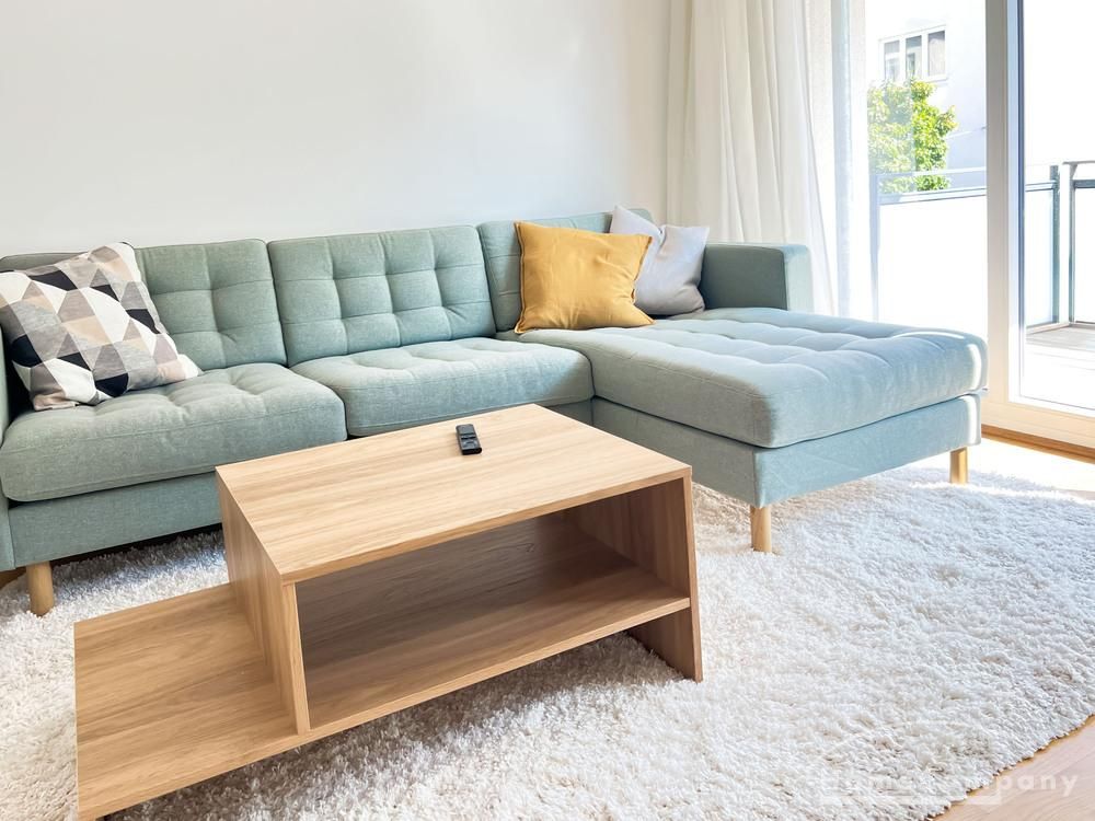 Das Wohnzimmer verfügt über ein großes Ecksofa, einen Fernseher, einen Essbereich und bietet direkten Zugang zum großzügigen Balkon. Die moderne Küche ist voll ausgestattet und enthält alle notwendigen Geräte und Utensilien. Im Schlafzimmer befindet sich ein komfortables Doppelbett sowie ausreichend Stauraum. Das Badezimmer ist mit einer Dusche und einer Waschmaschine ausgestattet. In der gesamten Wohnung ist Internet verfügbar.