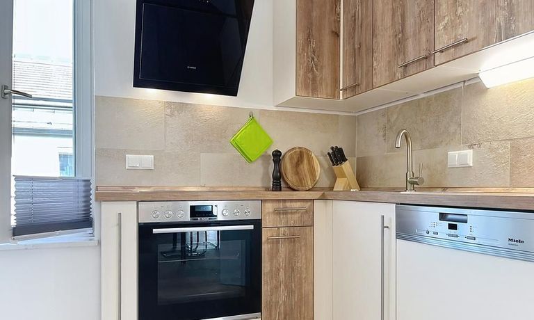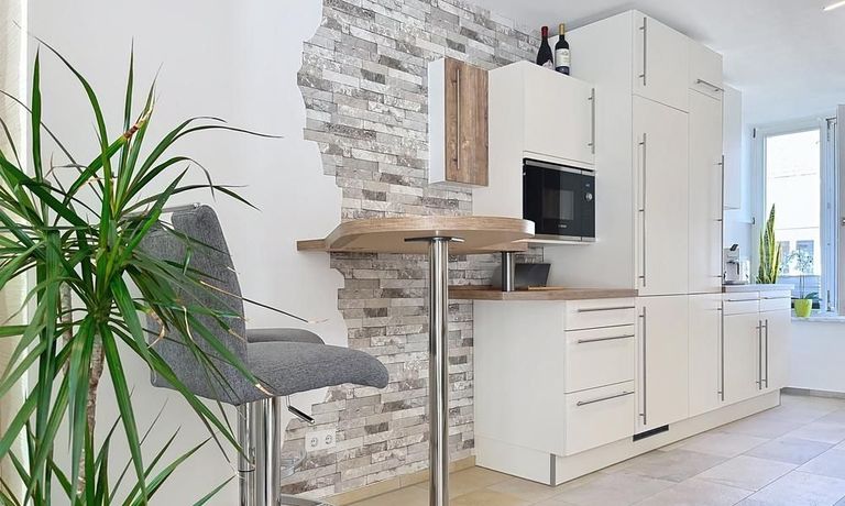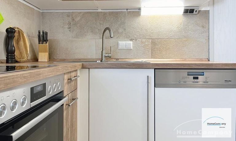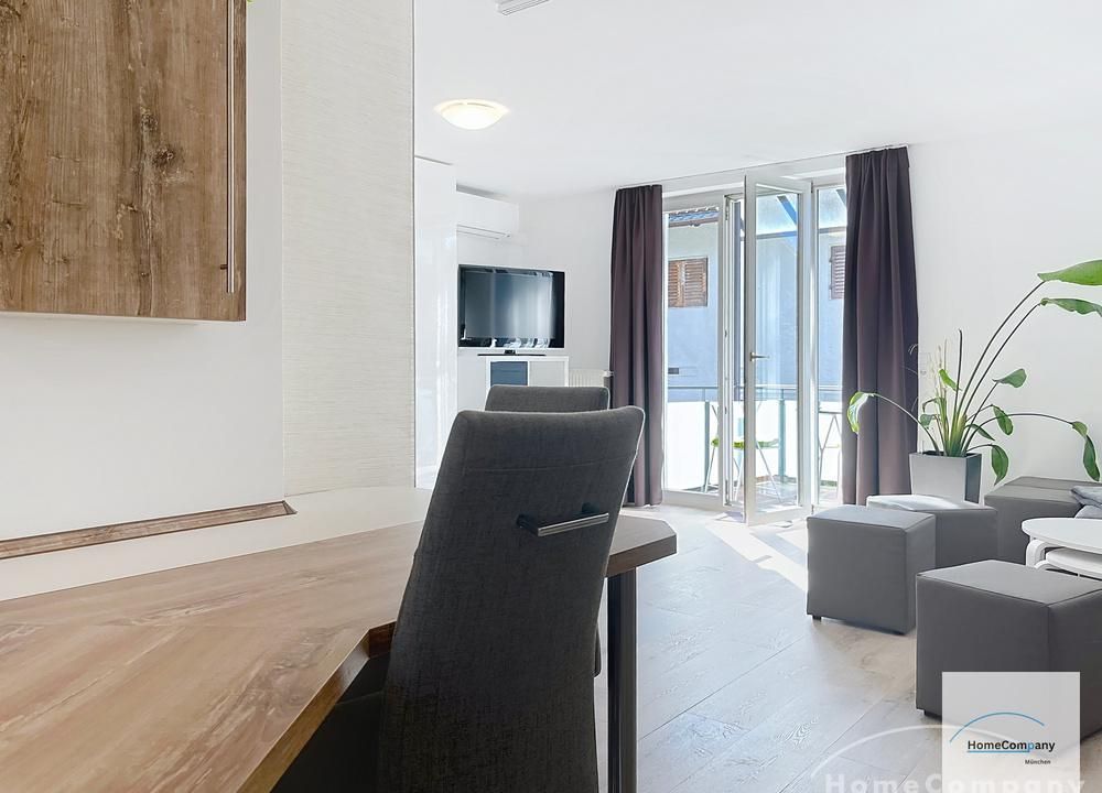 Die Wohnung wurde die letzten drei Jahre rundum renoviert und saniert, sie befindet sich im 1A-Zustand. Die Küche ist neu und wurde mit hochwertigen Elektrogeräten (Miele/Bosch) ausgestattet. Die Wohnung ist komplett möbliert und durch individuelle Möblierung praktikabel und raumgewinnend eingerichtet. Neben dem Schlafzimmer mit Doppelbett befindet sich ein weiteres Gästebett. Das Wohnzimmer-Sofa kann als Doppelbett umfunktioniert werden, sodass insgesamt 5 Schlafplätze zur Verfügung stehen. Alle Möbel sind überwiegend neuwertig und wenig benutzt.