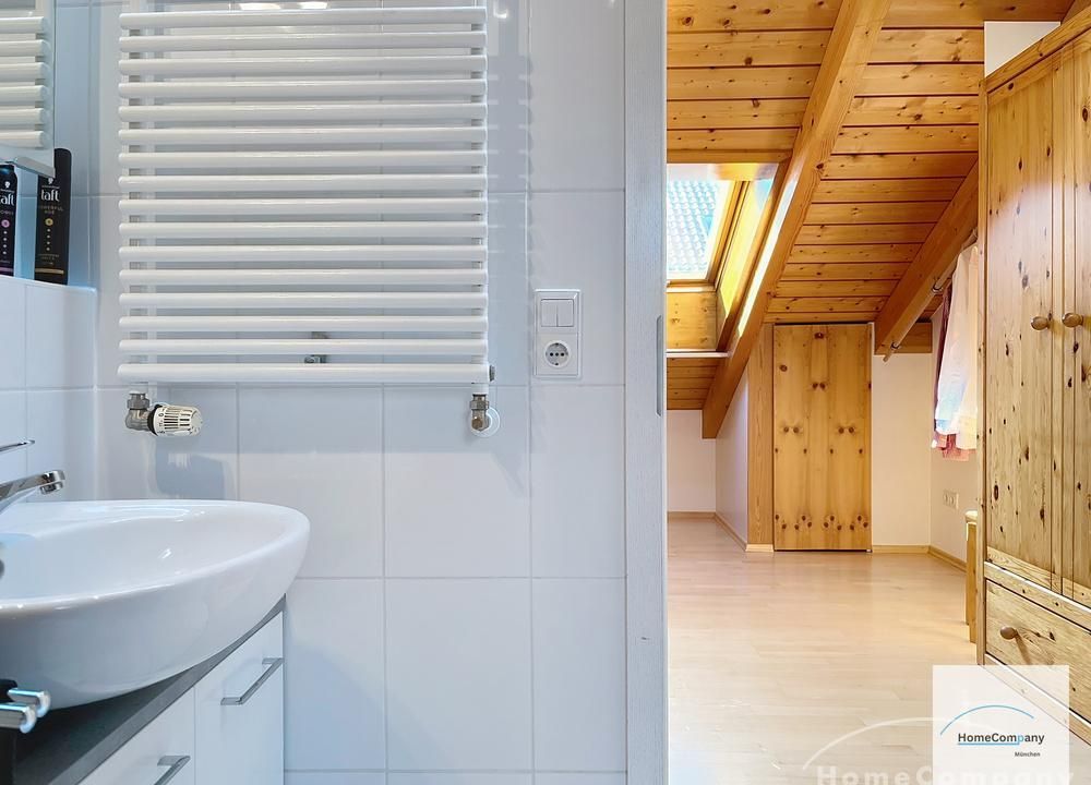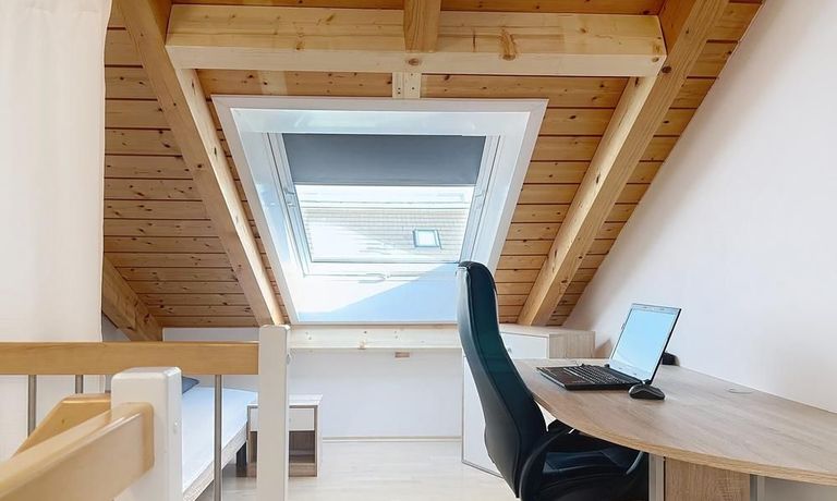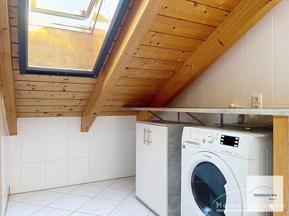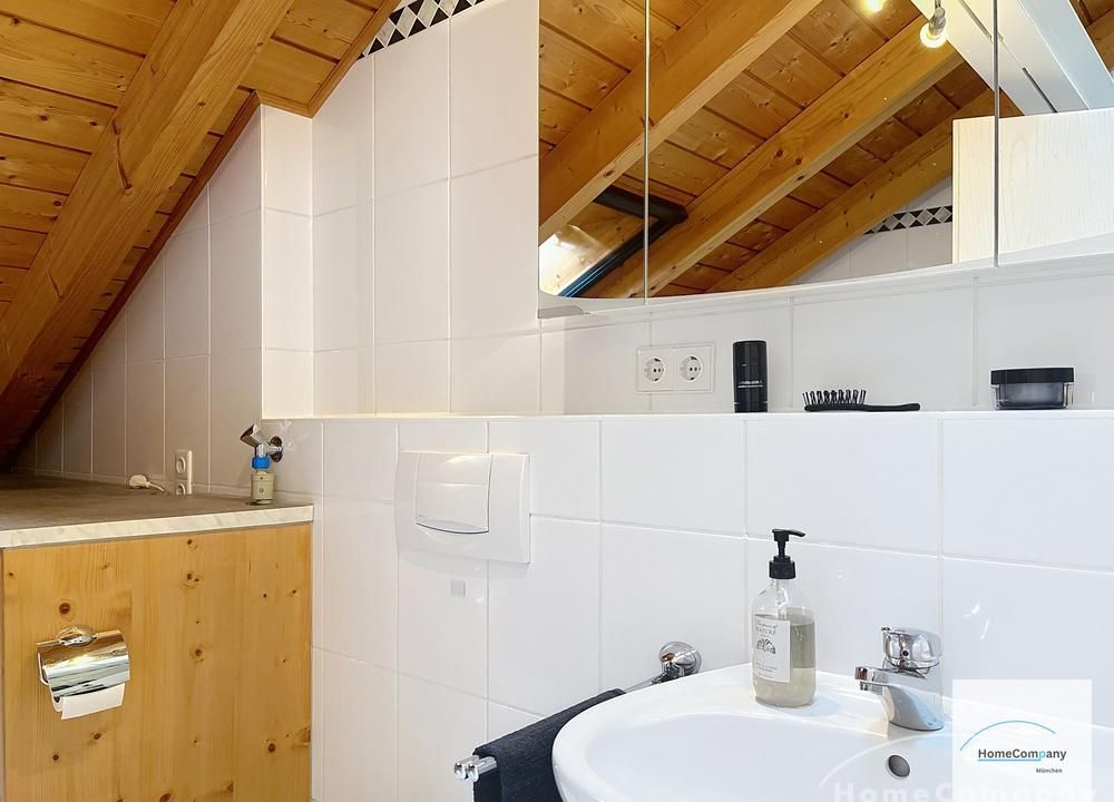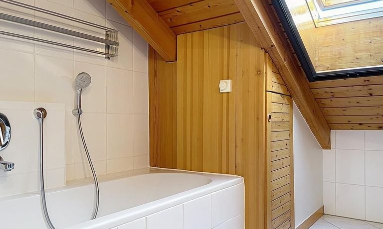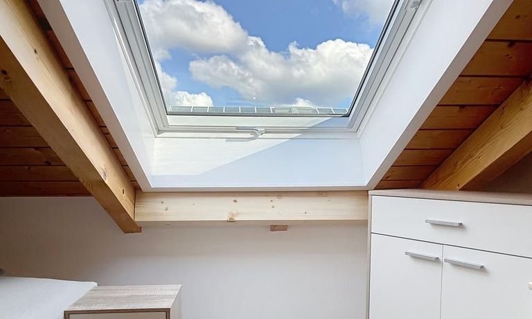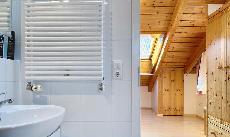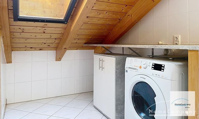 Die Böden bestehen teilweise aus neuen Fliesen (Jura-Marmor-Imitat), neuer Vinyl und Parkett. Das Badezimmer hat eine Fußbodenheizung. Darin befindet sich ein Waschtrockner. In den Dachschrägen wurden individuelle Schränke eingebaut, die für weiteren Stauraum sorgen.