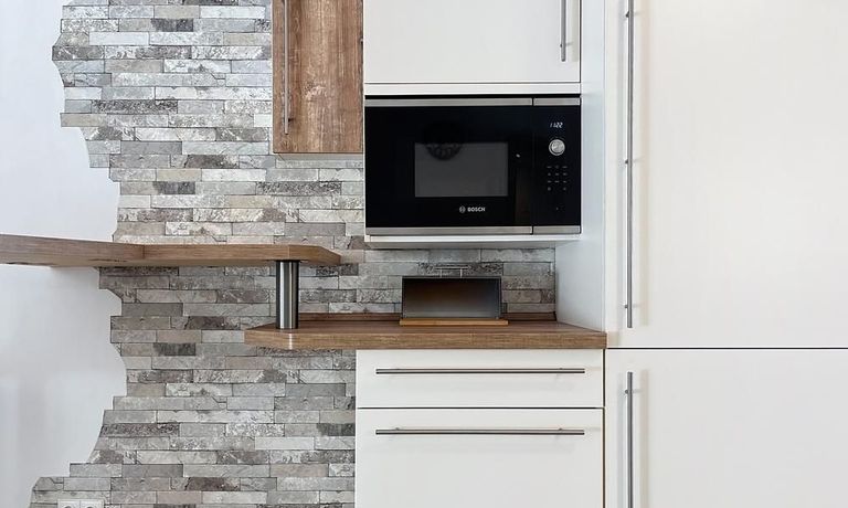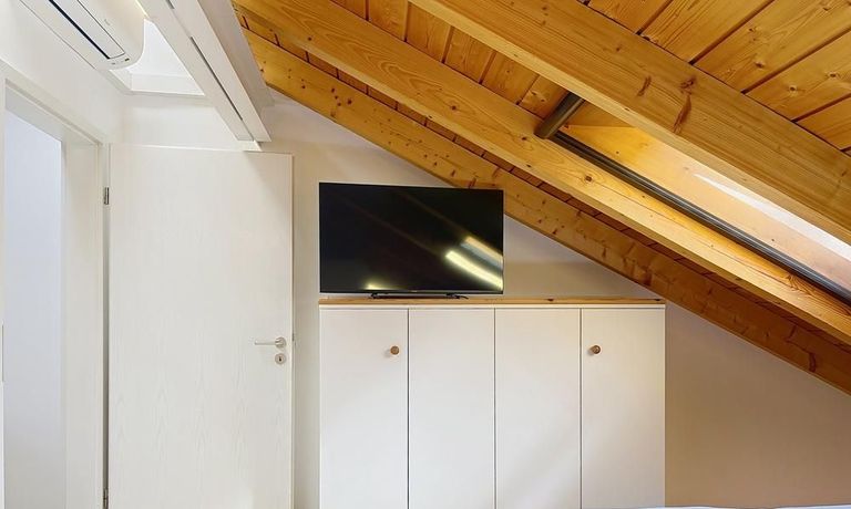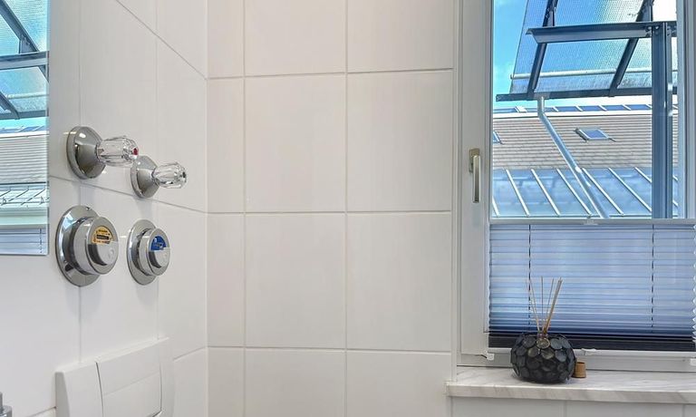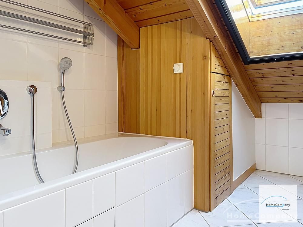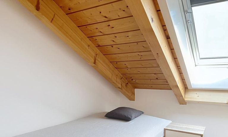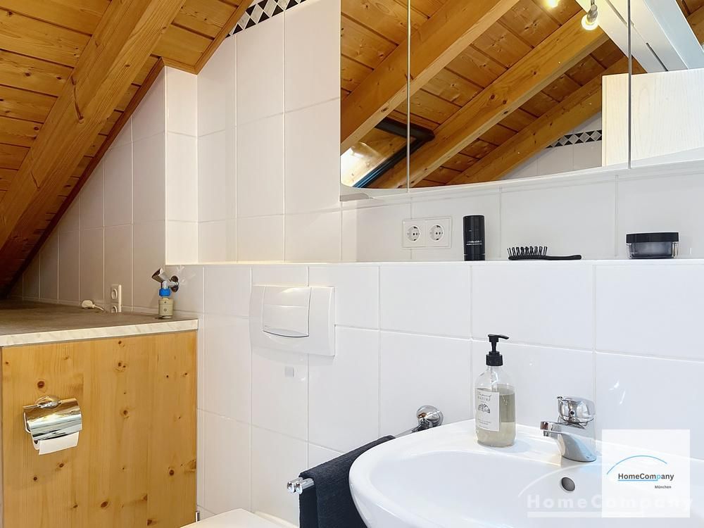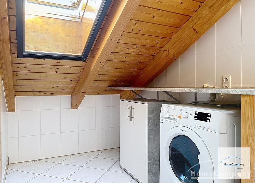 Die Böden bestehen teilweise aus neuen Fliesen (Jura-Marmor-Imitat), neuer Vinyl und Parkett. Das Badezimmer hat eine Fußbodenheizung. Darin befindet sich ein Waschtrockner. In den Dachschrägen wurden individuelle Schränke eingebaut, die für weiteren Stauraum sorgen.