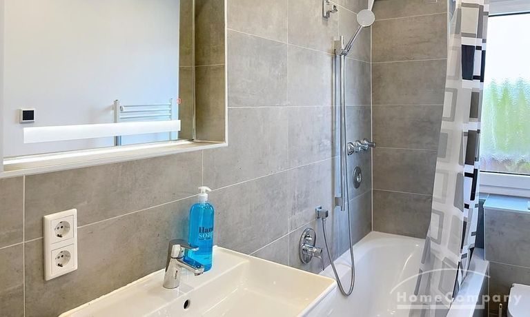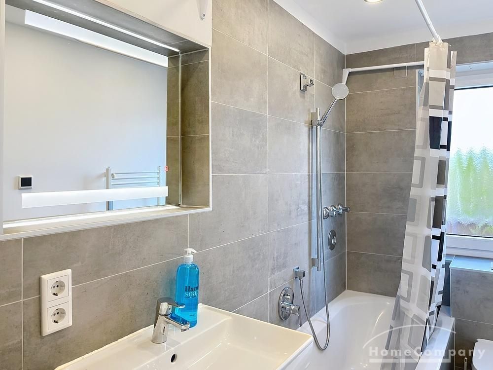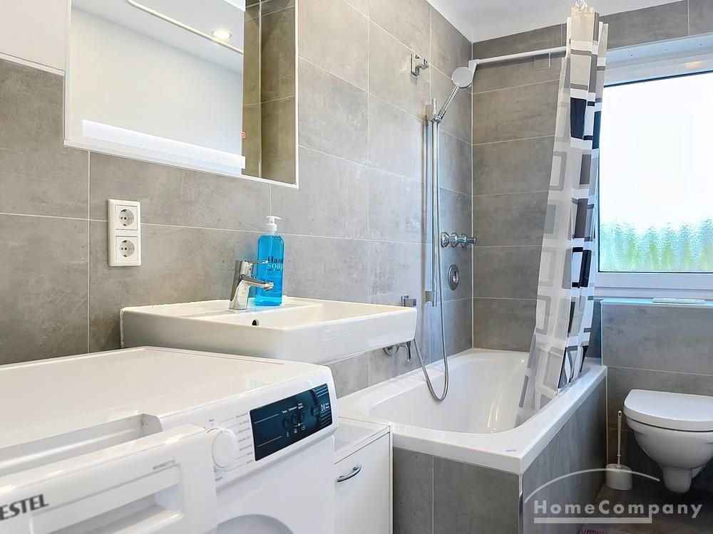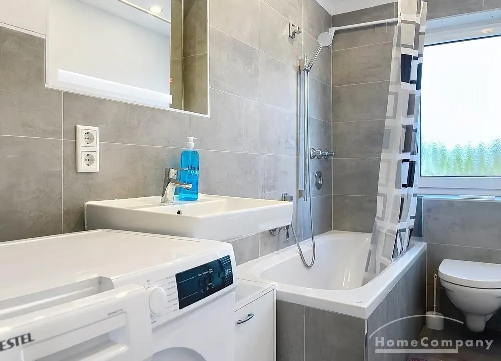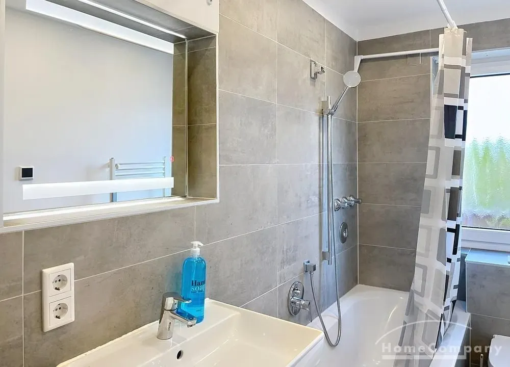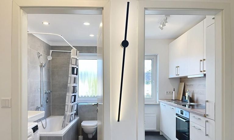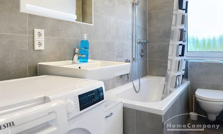 Das Bad wurde ebenfalls modernisiert und ist mit einer großzügigen Dusche sowie einer Waschmaschine ausgestattet.