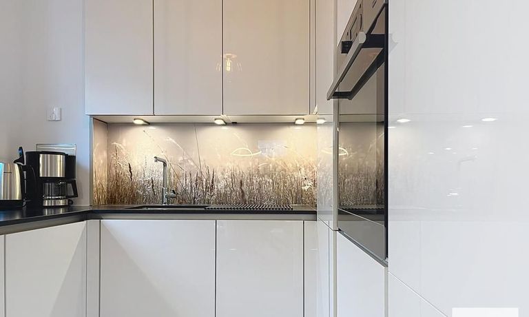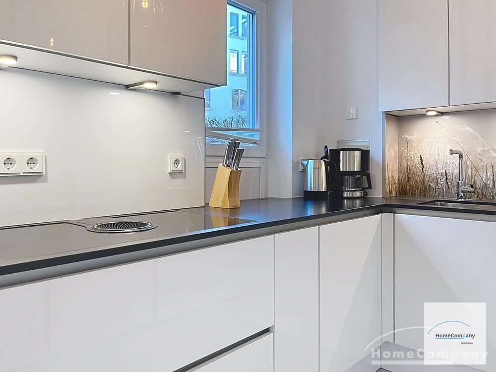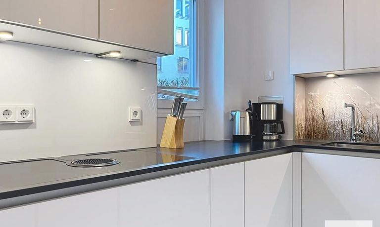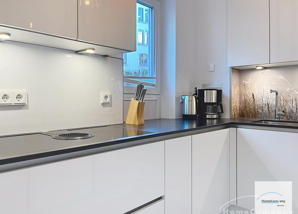 Voll ausgestattete Einbauküche mit Induktionskochfeld und Abluftsystem