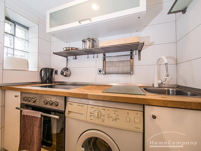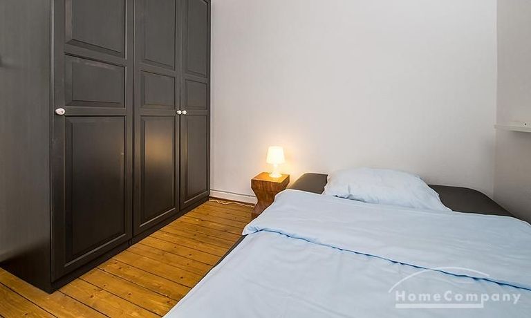 Zusätzlich bietet der im Flur gelegene Abstellraum, den oft vermissten Platz in einer kleinen Stadtwohnung. Die Wohnung ist möbliert mit kompletter Kücheneinrichtung: Backofen mit Ceranfeld, Waschmaschine, Liebherr Gefrier-Kühlkombination, Siemens Geschirrspülmaschine, Flachbildfernseher, gemütliches Sofa. Das Schlaf- und Arbeitszimmer ist mit einem großen Kleiderschrank sowie einem weiteren Schrank, die zusammen viel Stauraum bieten, ausgestattet. Das gemütliche Bett ist 140×200 cm groß. Im Flur befindet sich ein Abstellraum sowie ein großer Spiegel an der Wand. Auf dem Dachboden befindet sich ein Raum, in dem Wäsche aufgehängt werden kann. Ein Platz im Fahrradpavillon, der sich auf der Grünanlage befindet, ist außerdem möglich. Bis zur nächsten U-Bahn-Station (Hamburger Straße) sind es ca. 3 Minuten Fußweg. Von dieser U-Bahnstation bis zum Hauptbahnhof fährt man lediglich 8 Minuten. Angenehme Parkplatzsituation.