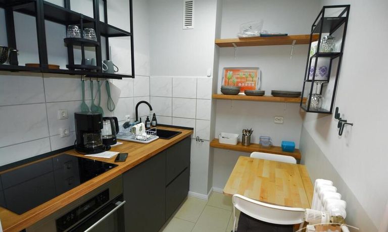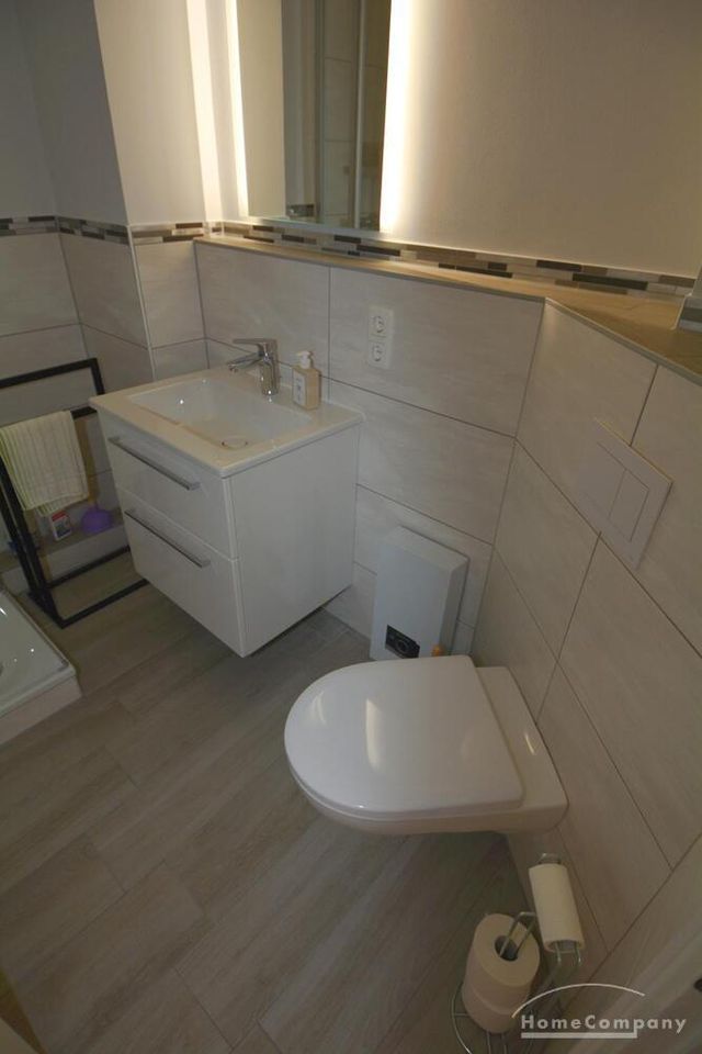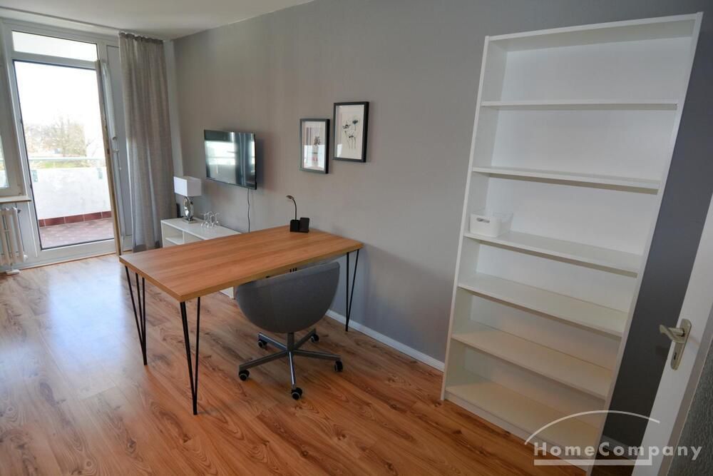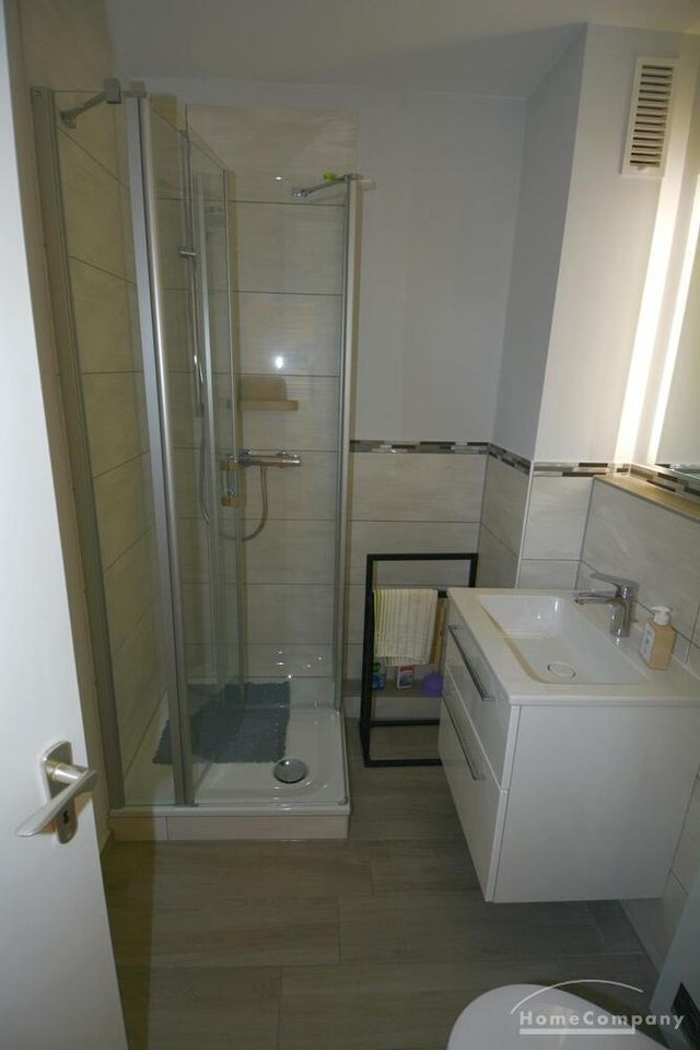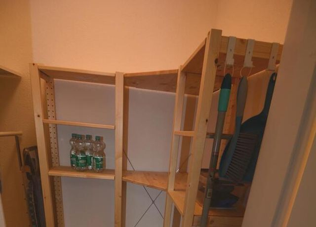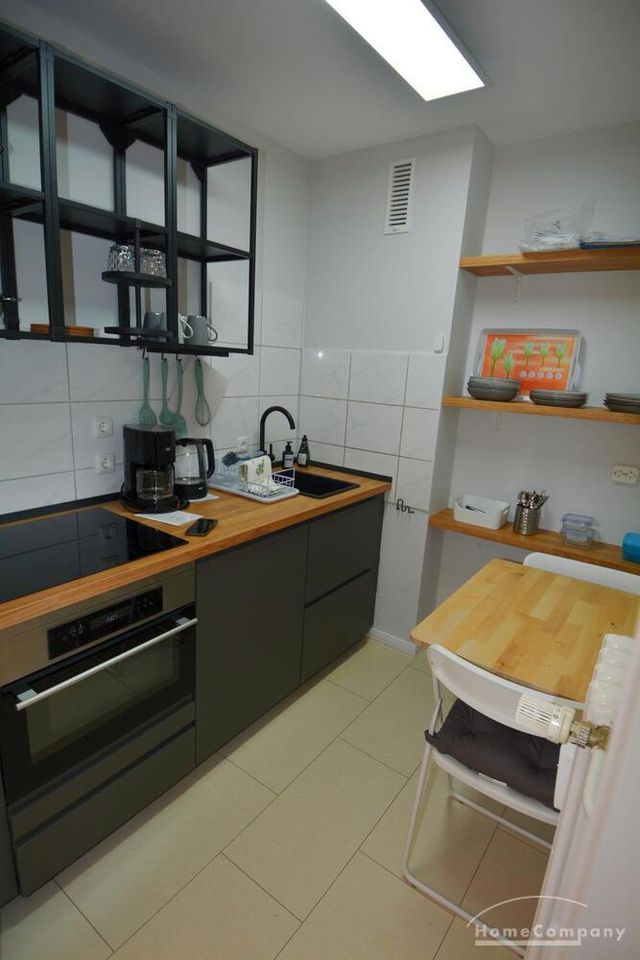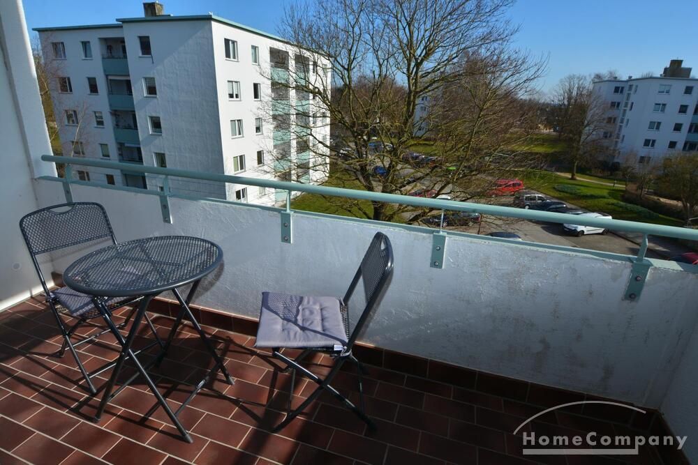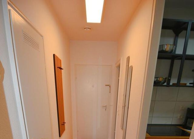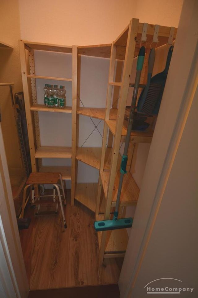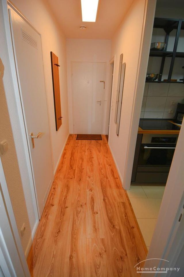 Ebenso ausgestattet ist die Wohnung mit einer Einbauküche, einem möblierten Balkon, einem separaten Abstellraum (mit Staubsauger und Bügelbrett) sowie einem Flur.