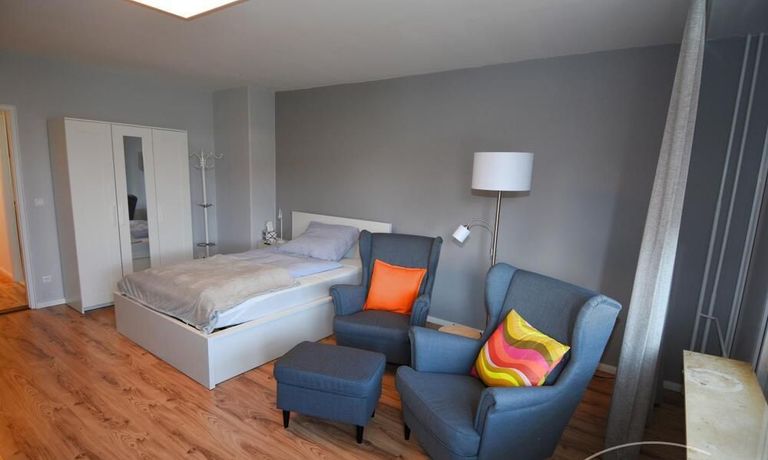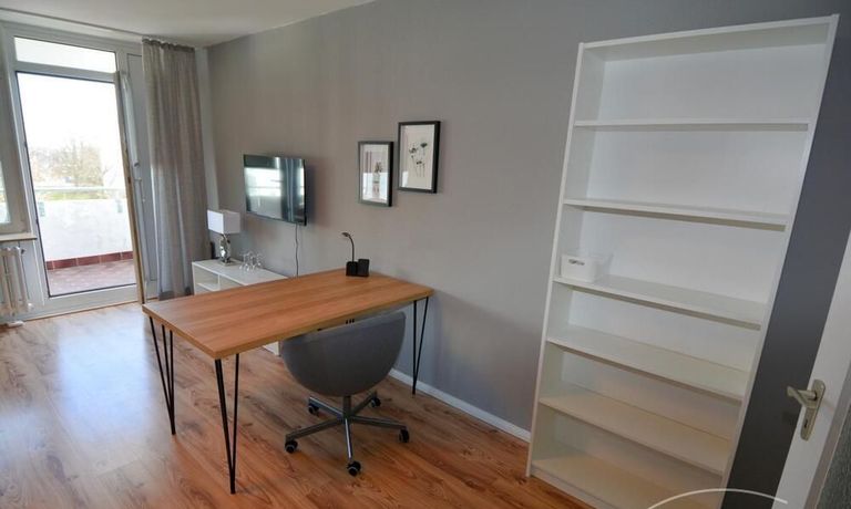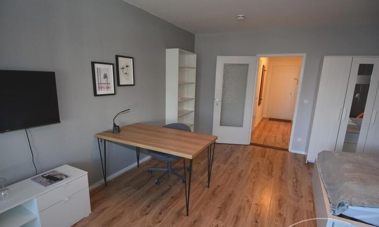Sie besteht aus einem Wohn-/Schlafzimmer mit Schreibtisch, Internet, (Fernseher und W-LAN), einem modernisierten innen liegendem Bad mit Dusche und WC.