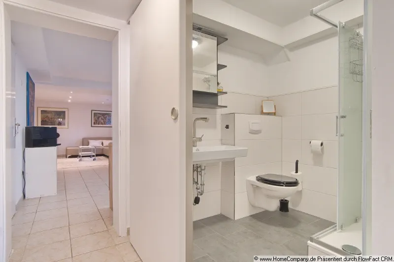 Freundliche, moderne Möblierung, Fliesenboden. Im Eingangsbereich befindet sich eine Garderobe. Der Essbereich ist mit einer Küche plus Mikrowellen-Grill ausgestattet, Geschirr ist vorhanden. Im Schlafzimmer befindet sich ein großes Doppelbett (1,60 x 2 m) und ein begehbarer Kleiderschrank. Schreibtisch und ein TV mit Sat-Anschluss stehen ebenfalls im Wohnzimmer zur Verfügung. Reinigungs- und Wäscheservice kann vereinbart werden. Vermieter spricht auch Englisch. Eine Internet-Flatrate ist im Mietpreis enthalten.