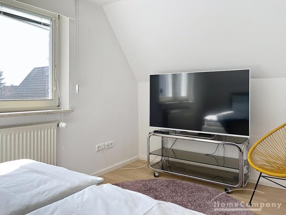 Das Gästezimmer ist mit hochwertigem Schlafsofa, Schreibtisch und Einbauschrank möbliert.