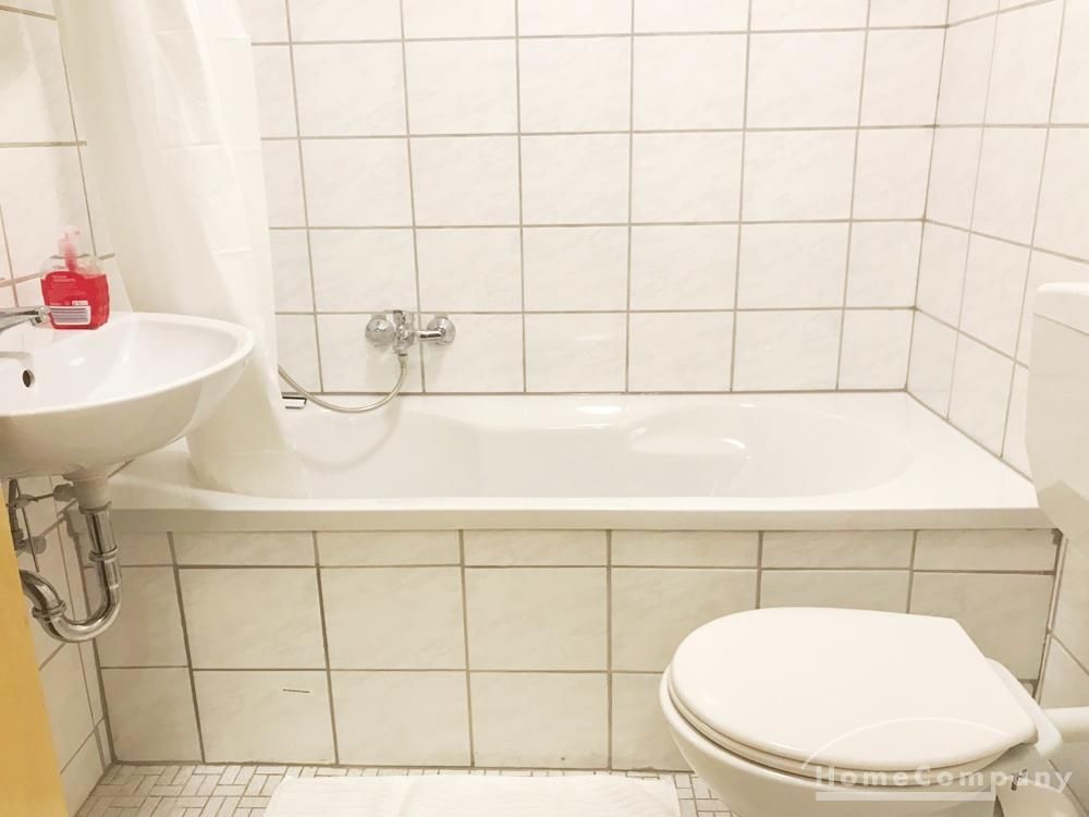 * Bad mit Duschwanne, Waschbecken, Toilette, Waschmaschine