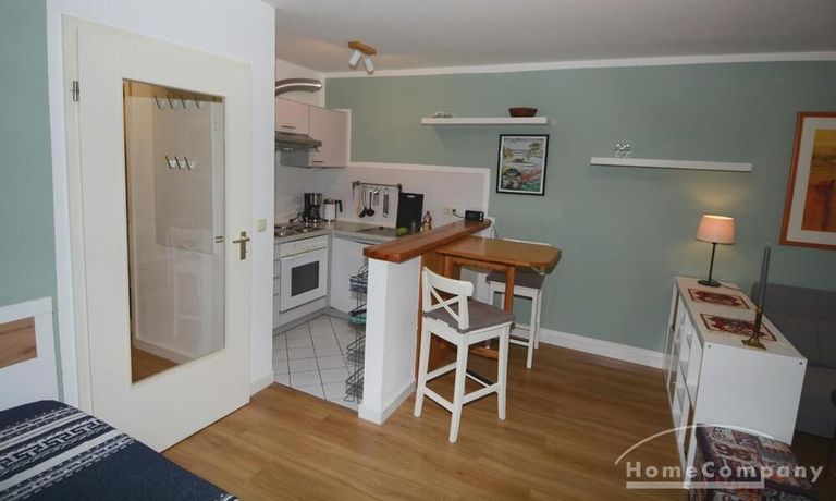 einer Apartmentanlage in Kiel Hassee, mit guter Anbindung an die Innenstadt von Kiel. Sie besteht aus einem kombinierten Wohn-Schlafraum mit integrierter offener Küche. Die Wohnung verfügt über ein Duschbad, einen kleine Balkon sowie einen Carport Stellplatz. Ein Kellerabstellraum ist ebenso vorhanden wie ein gemeinschaftlicher genutzer Wasch- und Trockenraum (Münzgeräte) und ein gemeinschaftlicher Fahrradraum. Kabel TV.