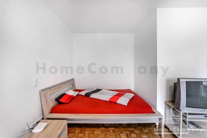 Modern möbliertes Apartment (Typ Sonoma), 4. OG mit Lift, renoviert, Parkettboden, Wohn-/Schlafraum mit Queen-Size-Bett (140 x 200 cm) mit Volllatex-Naturkautschukmatratze (17 cm), Kleiderschrank, Essplatz und Kabel-TV. Separate Küche mit Backofen, Mikrowelle und Spülmaschine. Bad mit Badewanne und Dusch-Trennwand.