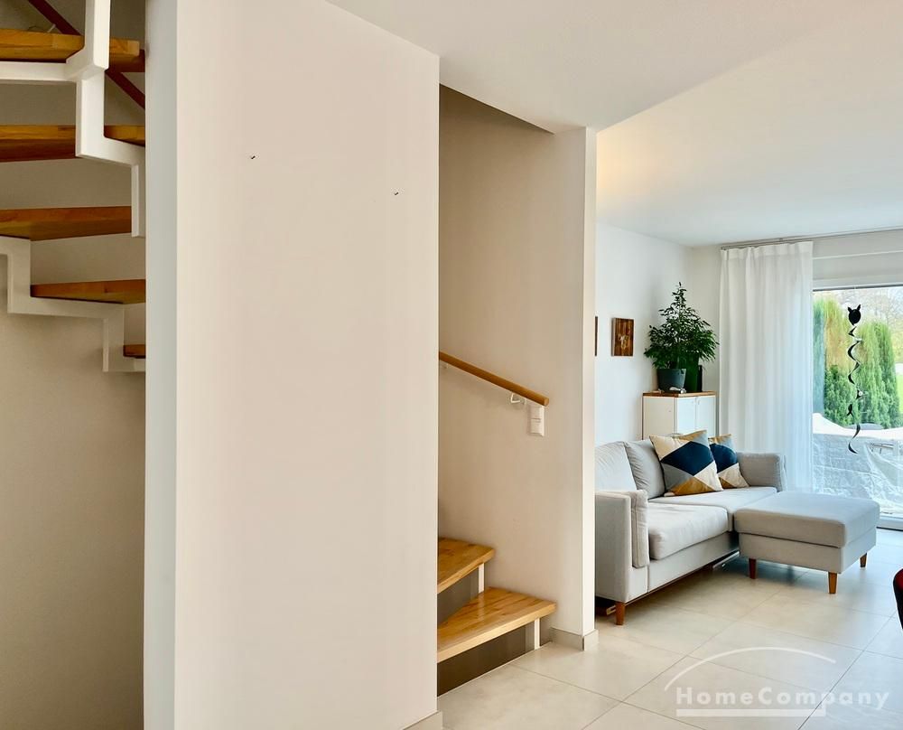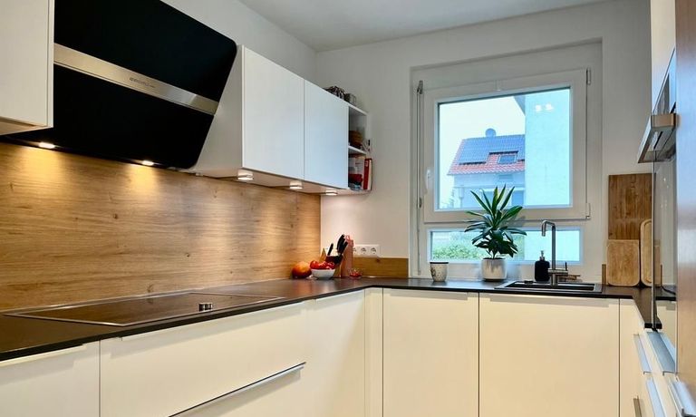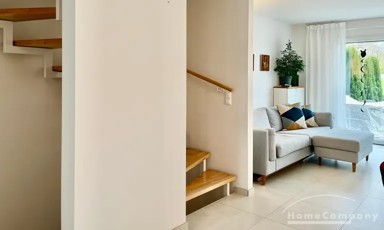 Im Erdgeschoss erwartet Sie eine offene, voll ausgestattete Küche, die nahtlos in das lichtdurchflutete Wohn- und Esszimmer übergeht. Ein Gäste-WC und der direkte Zugang zum Garten sorgen für zusätzlichen Komfort und eine harmonische Verbindung von Innen- und Außenbereich.