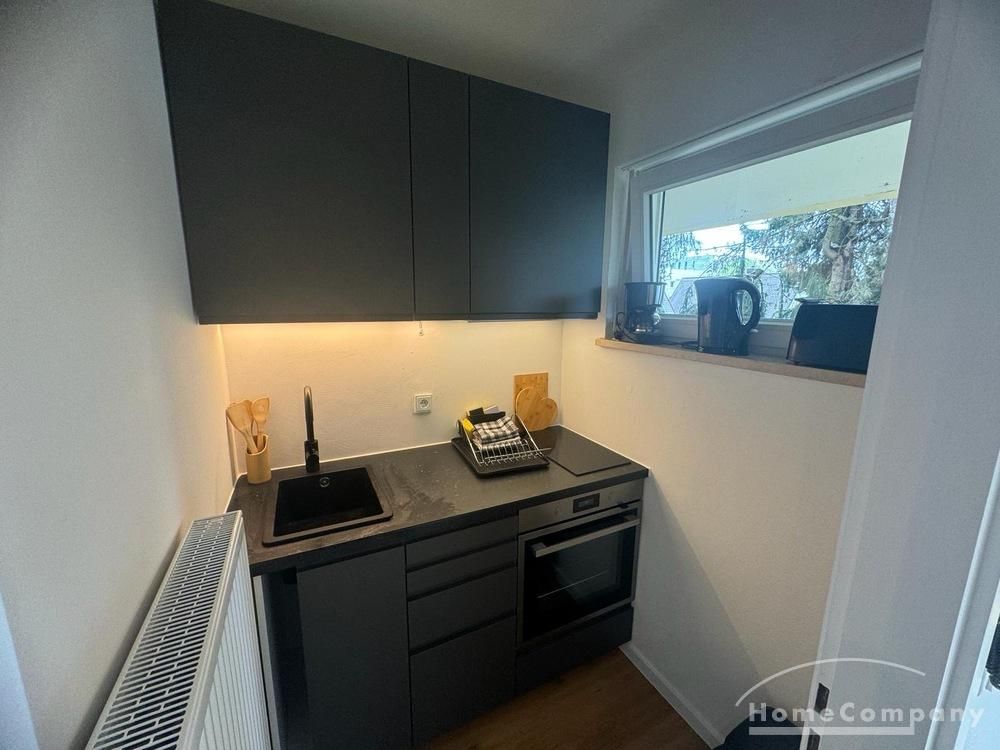 Neu renoviertes und möbliertes Appartement Der lichtdurchflutete Wohn/Schlafbereich ist mit einem Doppelbett, Essbereich und Sidebord mit Flatsreen möbliert. Im Flur befindet sich ein großer Kleiderschrank. Offene, voll ausgestattete Tageslicht-Küche.