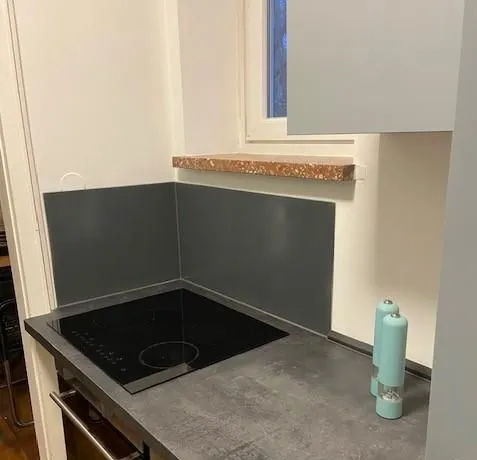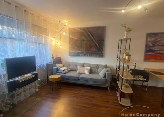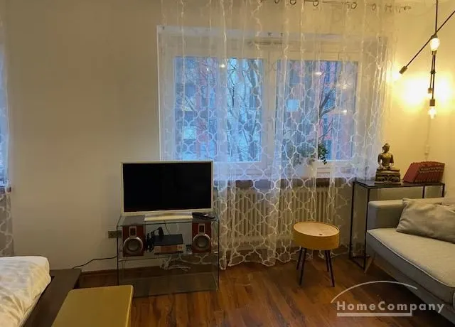 Freundlich modern eingerichtete 1,5 Zimmer-Wohnung in Haidhausen, 3. Etage; sehr ruhige Lage, da im ruhigen Innenhof gelegen. Neu gefliestes, modernes Bad (Rosenthal), dunkles Mooreichenlaminat, neue Einbauküche, Schlafnische mit Doppelbett (160 cm), moderne Möblierung, Waschmaschine in der Wohnung; zusätzliche Waschmaschine im Haus zur allgemeinen Nutzung.