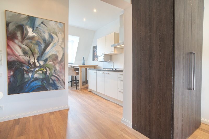 Echtholz-Fußboden, Wände in Feinputz gestrichen. Hochwertige und stilvoll arrangierte Möblierung, Flatscreen-TV mit Kabelanschluss. Der Essbereich ist mit einer Einbauküche ausgestattet, diese beinhaltet ein Ceran-Doppelkochfeld, Kühlschrank und Microwelle sowie eine Geschirr-Ausstattung. Neues Duschbad mit Glastrennwand und Handtuch-Heizkörper. Bettzeug und Bettwäsche sowie Handtücher sind vorhanden.Im Wohnschlafbereich ist eine Couch, Couchtisch und ein Schrankbett. Internetanschluss vorhanden.