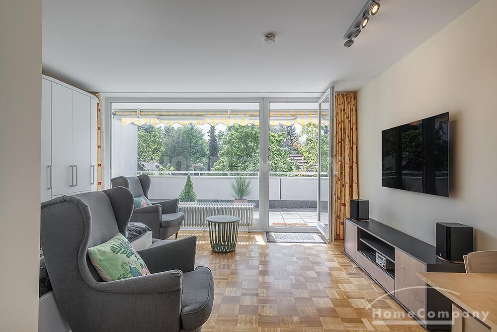 Moderne, großzügig geschnittene 1-Zimmer-Dachterrassen-Wohnung in München Pasing. Sehr ruhig im grünen gelegen. Die Wohnung wurde Anfang 2023 komplett renoviert und neu eingerichtet.