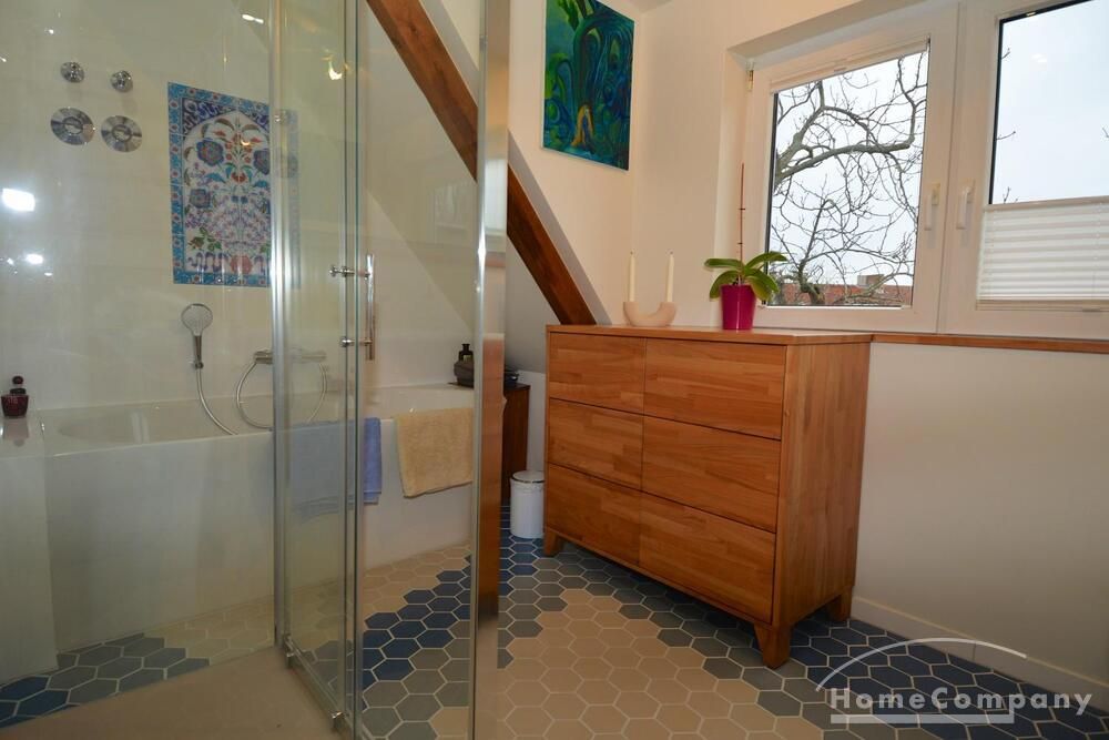 Diese stilvoll eingerichtete 2-Zimmer-Maisonette bietet ruhiges Wohnen im Hinterhof, mitten im lebendigen Szenekiez. Auf der oberen Etage befinden sich ein Schlafzimmer, ein frisch renoviertes Badezimmer mit Dusche und Badewanne, ein Arbeitsbereich, der wie ein dritter Raum genutzt werden kann, sowie ein begehbarer Kleiderschrank. Im unteren Bereich lädt der offene Wohnraum mit moderner Küche, ausgestattet mit einer Induktionsplatte mit Grillfunktion und einem Dampfgar-Backofen, zum Verweilen ein. Der angrenzende Balkon mit Markise bietet eine gemütliche Außenfläche. Die Wohnung besticht zudem durch Highlights wie ein Heimkino mit Beamer und Leinwand und wird voll möbliert vermietet – inklusive Bettwäsche, Handtücher und Geschirr. Trotz zentraler Lage ist die Wohnung angenehm ruhig und ideal angebunden. Perfekt für alle, die modernes Design und urbanes Leben schätzen!