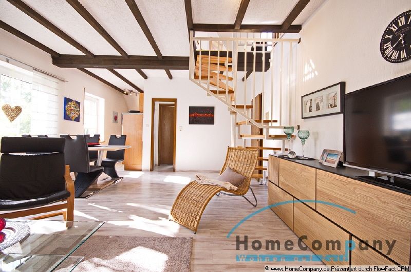Moderne und exklusive Wohnung über zwei Etagen in einem Zweifamilienhaus mit separatem Eingang im Dortmunder-Süden. Die Grundfläche der großzügigen Wohnung beträgt ca. 70 qm Die Wohnung ist komplett ausgestattet und wie folgt aufgeteilt: Großer Wohnessbereich mit offener Küche, helles und modernes Duschbad mit Fenster, Flur und ein kleiner Abstellraum. Auf der oberen Etage befindet sich das Schlafzimmer mit einem großen Bett und eine Arbeitsecke mit Schreibtisch. Der monatliche Mietpreis beträgt: 995,- €. Die Nebenkosten, Heizkosten, Strom und eine Internetzugang sind im Mietpreis enthalten. 1 Monatsmiete Kaution. Endreinigung nach Absprache. Ein Reinigungsservice nach Absprache und Aufpreis angeboten werden. Das Objekt ist nur für Nichtraucher verfügbar. Ein Energieausweis liegt vermieterseits noch nicht vor, ist jedoch angefragt.