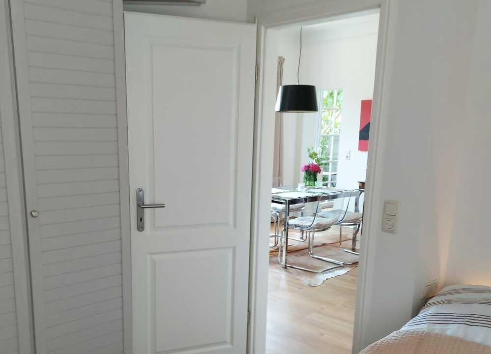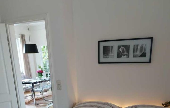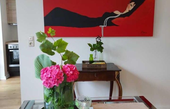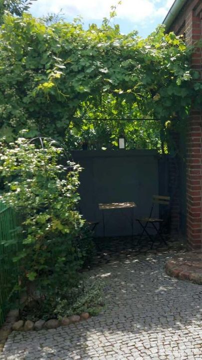 Moderne und neu renovierte Wohnung im EG einer ehemaligen Schmiede im Hof eines Mehrfamilienhauses mit TERRASSE, Wohnraum mit Anrichte, Couch, Esstisch, Schlafzimmer mit Doppelbett Kleiderschrank, TV ,Küche-Zugang zur TERRASSE mit Geschirrspüler und Waschmaschine, WLAN vorhanden, GEZ Gebühren müssen bezahlt werden, wer sich in der Fritz Reuter Str. anmeldet