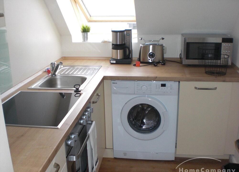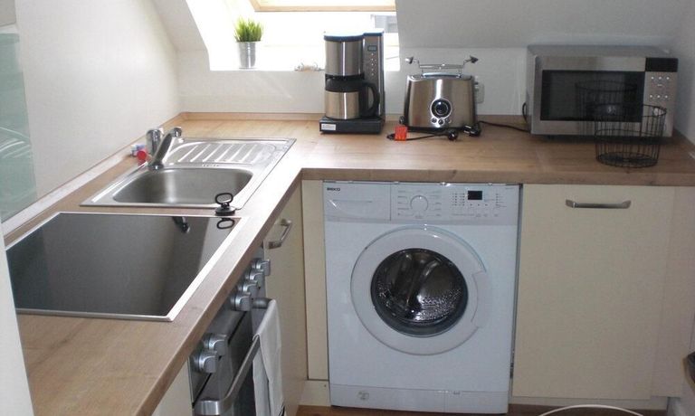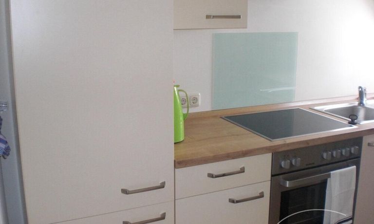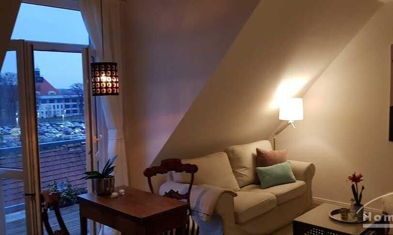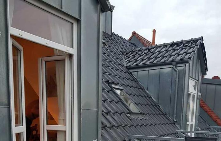 Moderne Wohnung im DG eines Mehrfamilienhauses mit BALKON, Wohnraum mit ausziehbarer Couch, TV, Anrichte, Schlafzimmer mit Bett 1,40 m breit, Kleiderschrank, Küche mit Waschmaschine und Geschirrspüler, DU/WC, WLAN vorhanden, GEZ Gebühren müssen bezahlt werden, wer sich in der Fritz Reuter Str. anmeldet