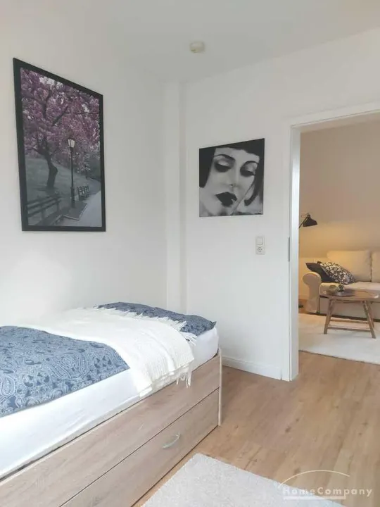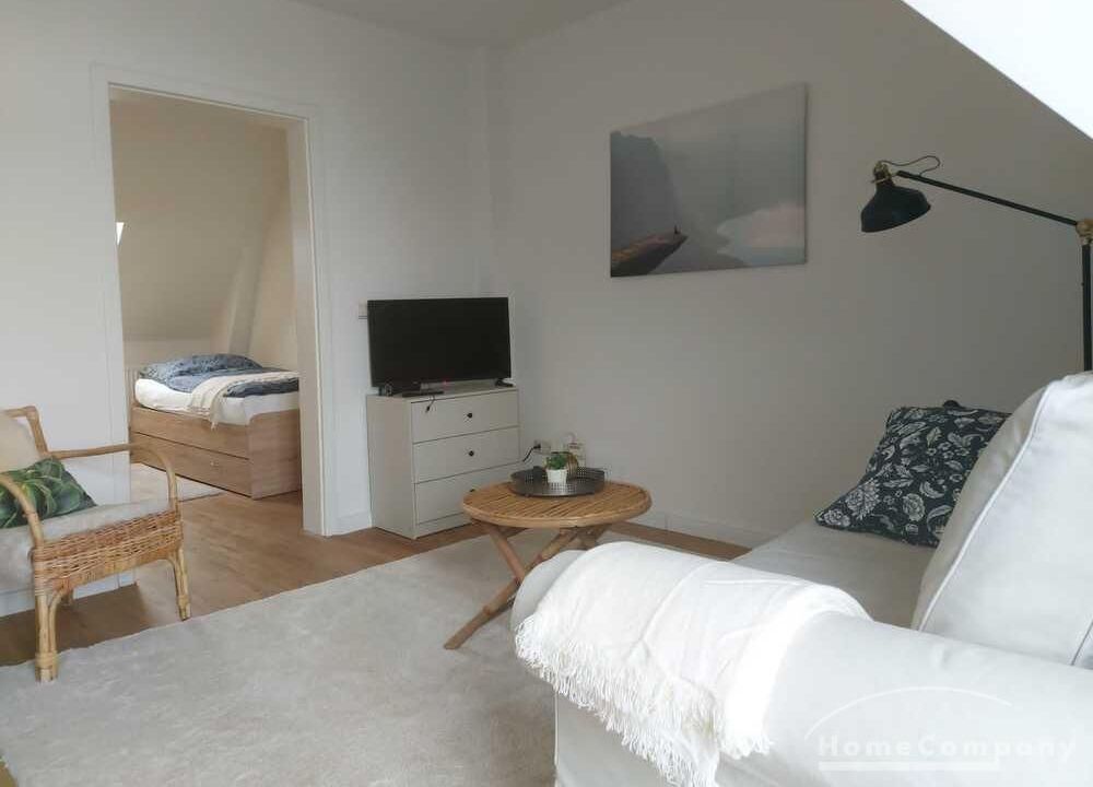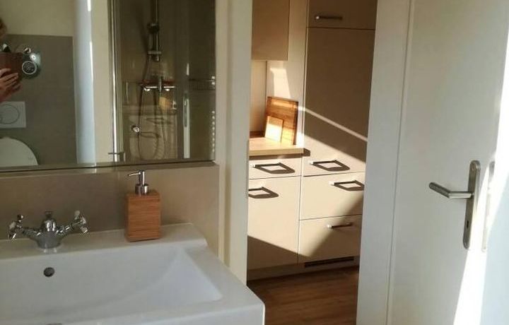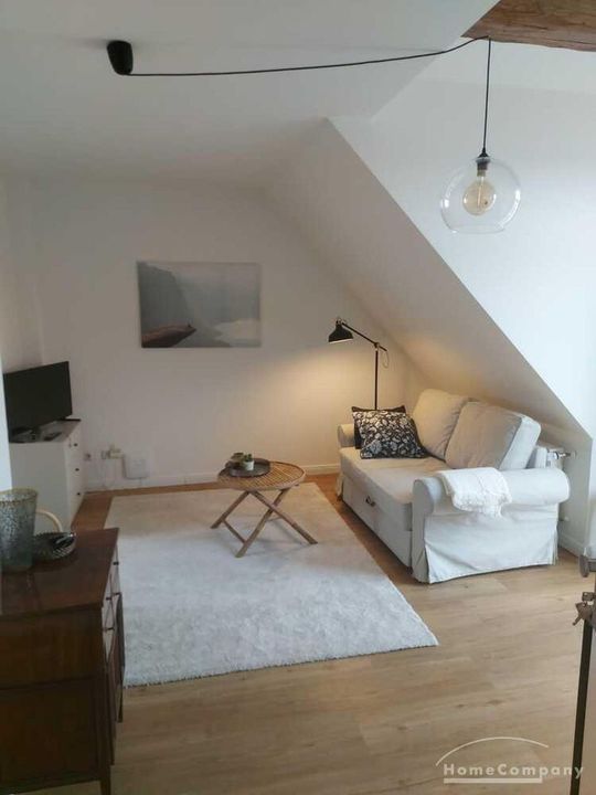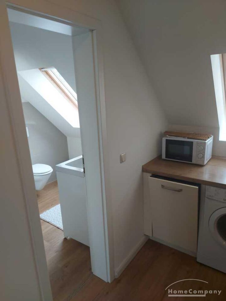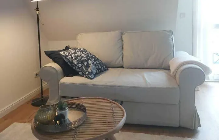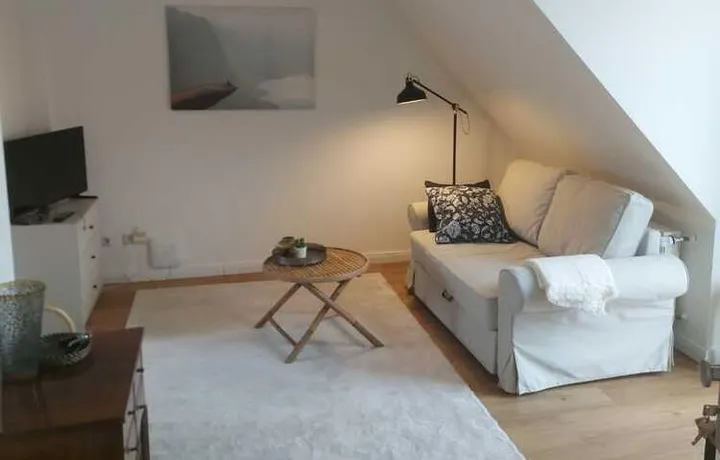 Moderne Wohnung im DG eines Mehrfamilienhauses mit BALKON, Wohnraum mit ausziehbarer Couch, TV, Anrichte, Schlafzimmer mit Bett 1,40 m breit, Kleiderschrank, Küche mit Waschmaschine und Geschirrspüler, DU/WC, WLAN vorhanden, GEZ Gebühren müssen bezahlt werden, wer sich in der Fritz Reuter Str. anmeldet