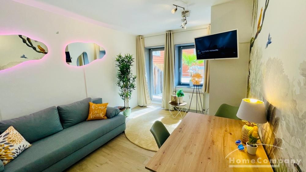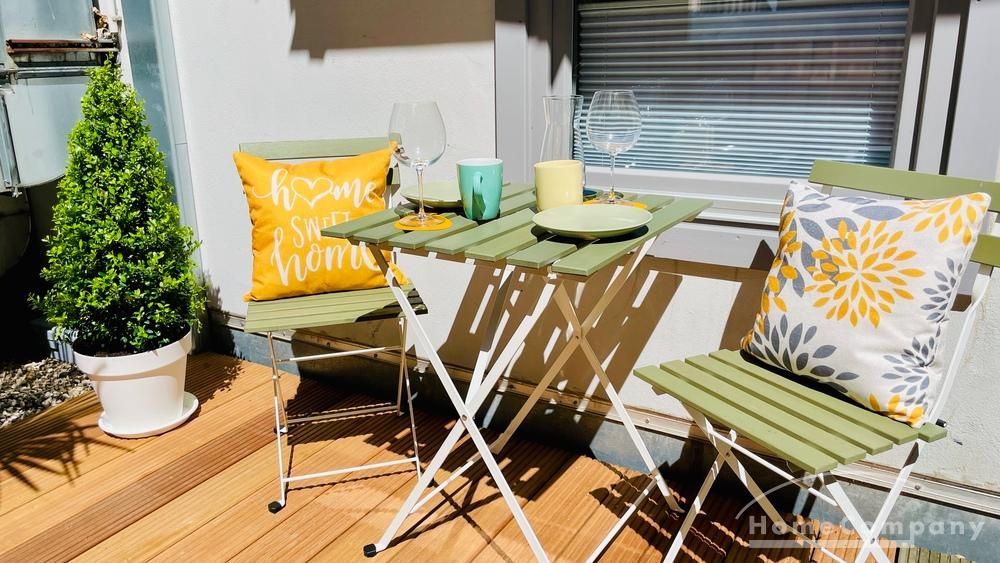 Hochwertige 2 Zimmer Wohnung mit BALKON, Wohnzimmer mit Couch, TV und Esstisch, Küche voll ausgestettet – Herd mit Backofen, Kaffeemaschine, Toaster, Schlafzimmer mit Boxspringbett und Kleiderschrank, DU/WC, NICHTRAUCHER, WLAN vorhanden