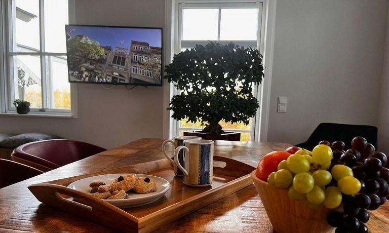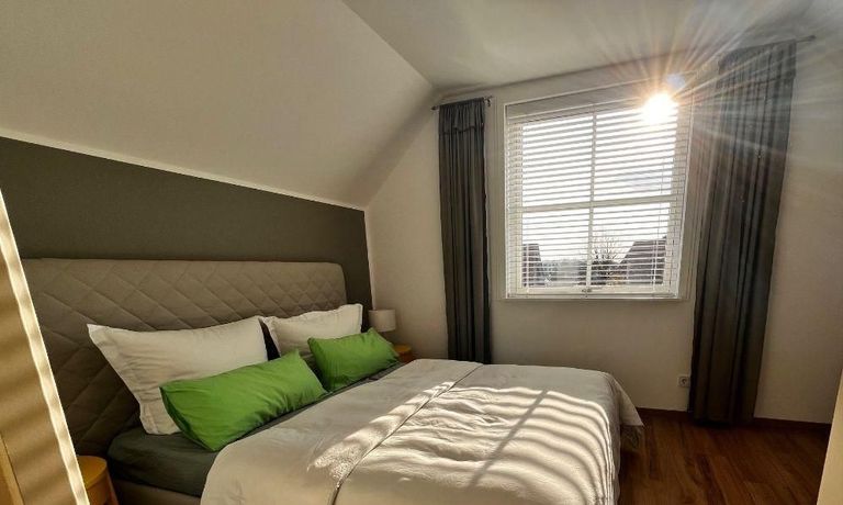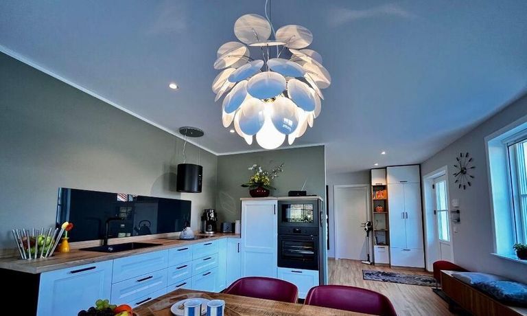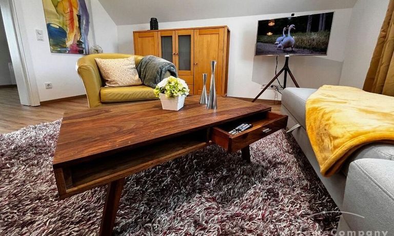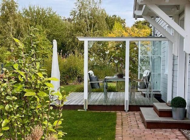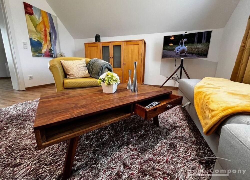 Geschmackvoll eingerichtete 2 Zimmer Wohnung mit sep. Eingang und Terrasse in einem großen 2 Familienhaus ca. 80 m² mit moderner Küchenzeile mit Einbauküche, Geschirrspüler, Esstisch, Stühle und TV – Zugang zur Terrasse mit Weber Grill und Gartenmöbel, im 1. OG – Wohnraum ausziehbare Couch und TV, im Flur – Kleiderschrank und Schreibtisch, Schlafraum mit Doppelett, DU/WC mit Waschtrockner, NICHTRAUCHER, WLAN vorhanden, in der gesamten Wohnung – Fußbodenheizung und kontrollierte Wohnungslüftung, Parkplatz auf dem Grundstück, sehr ruhige Lage – ca. 100 m bis zum See