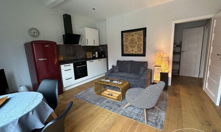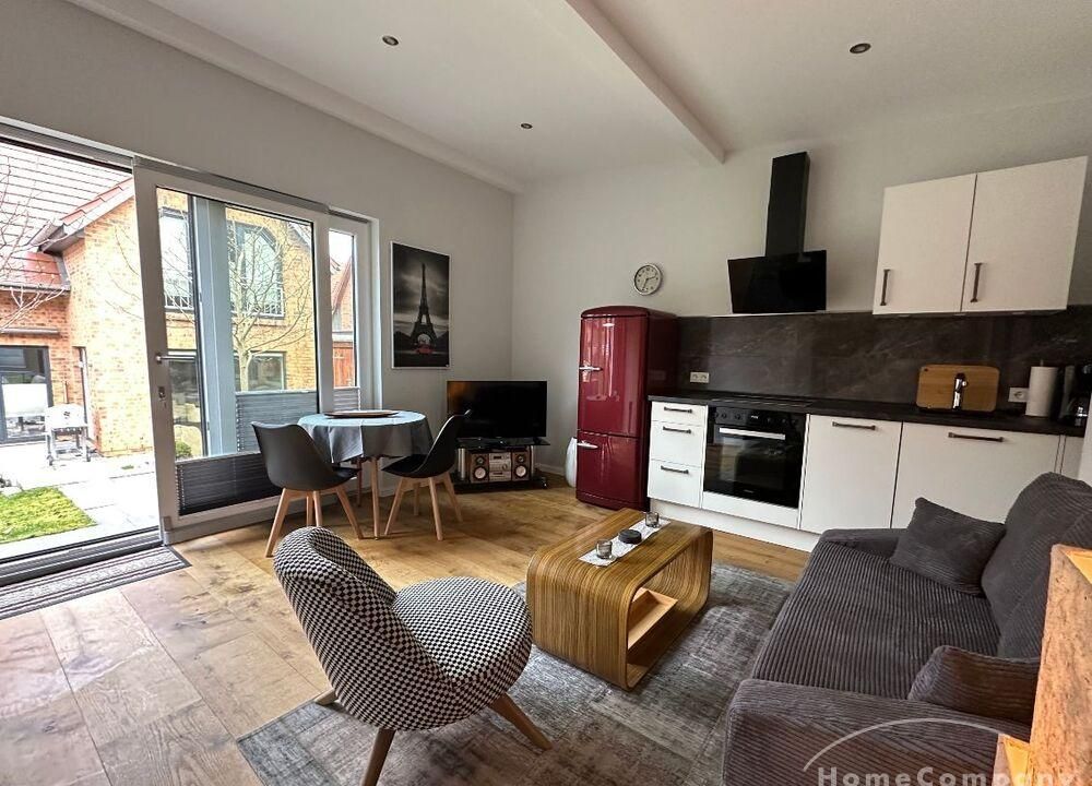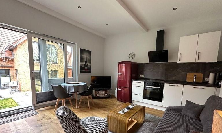 Haus im Hof eines Einfamilienhauses mit 2 Zimmer ca. 40 m², Wohnzimmer mit ausziehbarer Couch, Musikanlage und TV – über Internet – Küchenzeile mit Geschirrspüler, Herd mit Backofen, Kühlschrank mit Gefrierteil, Tisch und Stühle, modernes Bad mit ebenerdiger Dusche und Fenster, Schlafzimmer mit Doppelbett und Kleiderschrank, NICHTRAUCHER, ohne Bettwäsche und Handtücher, WLAN vorhanden, Parkplatz an der Straße, sehr ruhige Lage, Nahverkehrsanbindung, Möglichkeiten zum draußen sitzen – Miete für 2 Personen – mit Vermieter vereinbaren!!!