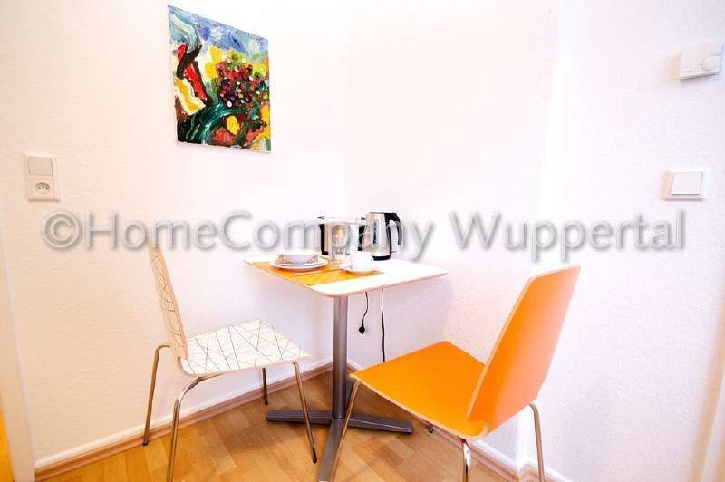 This modern apartment is located in a multifamily house in Remscheid. A bus stop and stores for your daily needs can be reached in a small amount of time. An advantage of this apartment is the swimming facility H2O which is very close to the house. The combination of the living room and the bedroom offers the tenant a double bed (1,60 m x 2,00 m), a desk for home-office use, a living area including two armchairs, a side table, a TV with a 3D option and a bluerayplayer. In the modern kitchen you can find two induction hobs, a microwave with grilling option, a dishwasher, as well as all the cooking utensils and cutlery you could need and a dining area seating two people. The bathroom including a shower is kept in a light shade. In the hall you can find a spacious closet, the washing machine is located on the same floor. This is a non-smoking property. All ancillary costs and energy expenses for one person and the usage of the internet are included in a rent of € 750,00. The landlord is responsible for the cleaning after your stay. The final cleaning will be charged in regard to the caused effort with € 35,00 per hour.