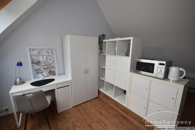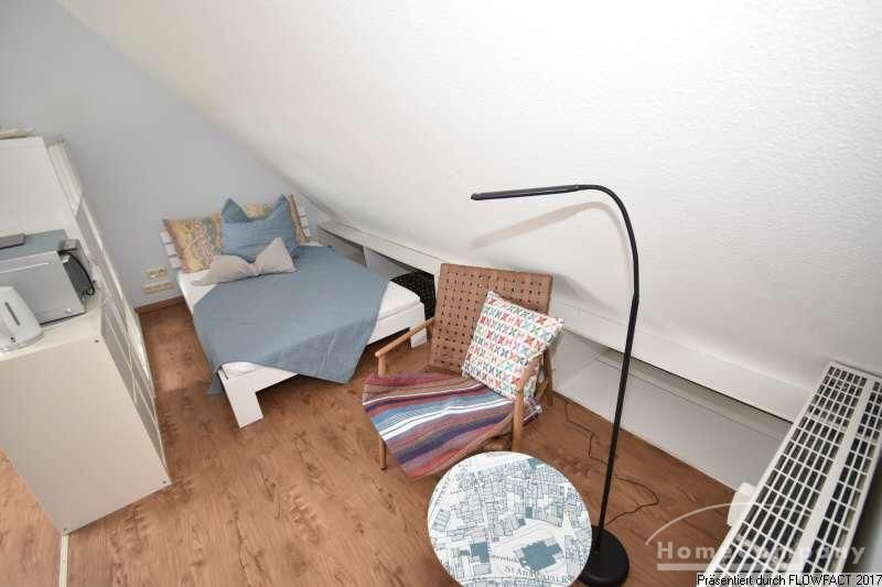 Dieses moderne Apartment befindet sich im Dachgeschoß eines Hauses im historischen Schnoorviertel. Eine geschickte Raumgestaltung, trennt den Raum in einen offenen Wohnbereich mit Singleküche und einen Schlafbereich mit Einzelbett. Ein kleiner Arbeitsplatz unter dem Fenster ergänzt den Wohnbereich. Flache Kommoden sorgen für eine effiziente Nutzung des vorhandenen Platzes. Das helle Tageslichtbad mit Dusche vervollständigt das Angebot.
