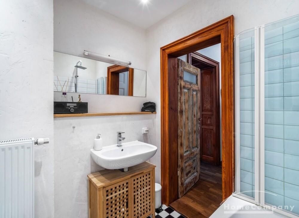 + Das Badezimmer ist mit einer Wanne ausgestattet. Hier findest du auch Reinigungsmittel und -utensilien.