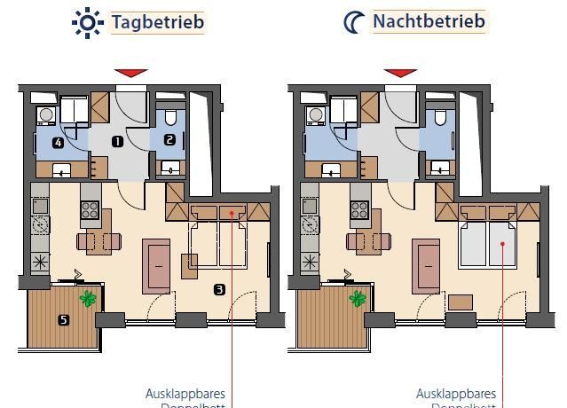 • Das 1-Zimmer Apartment hat eine Gesamtfläche von ab 39 qm und ist mit allem ausgestattet, was Sie zum Leben benötigen.