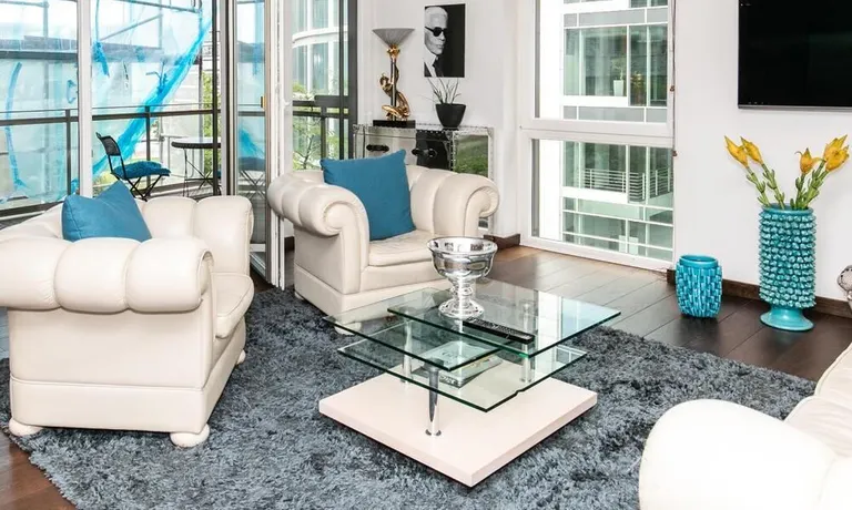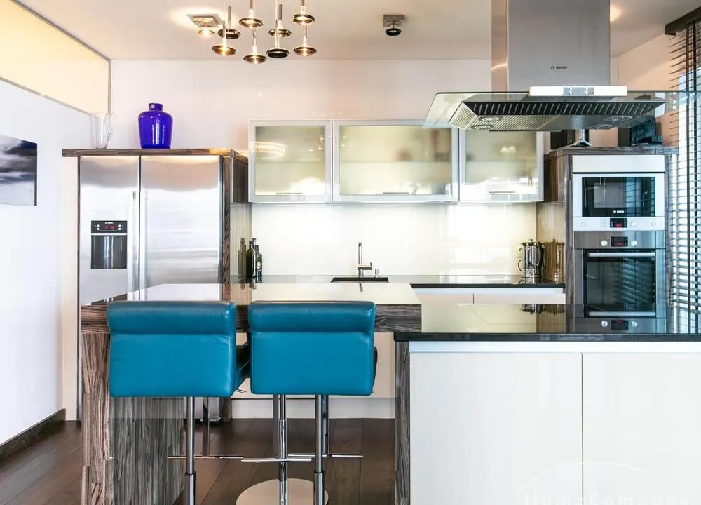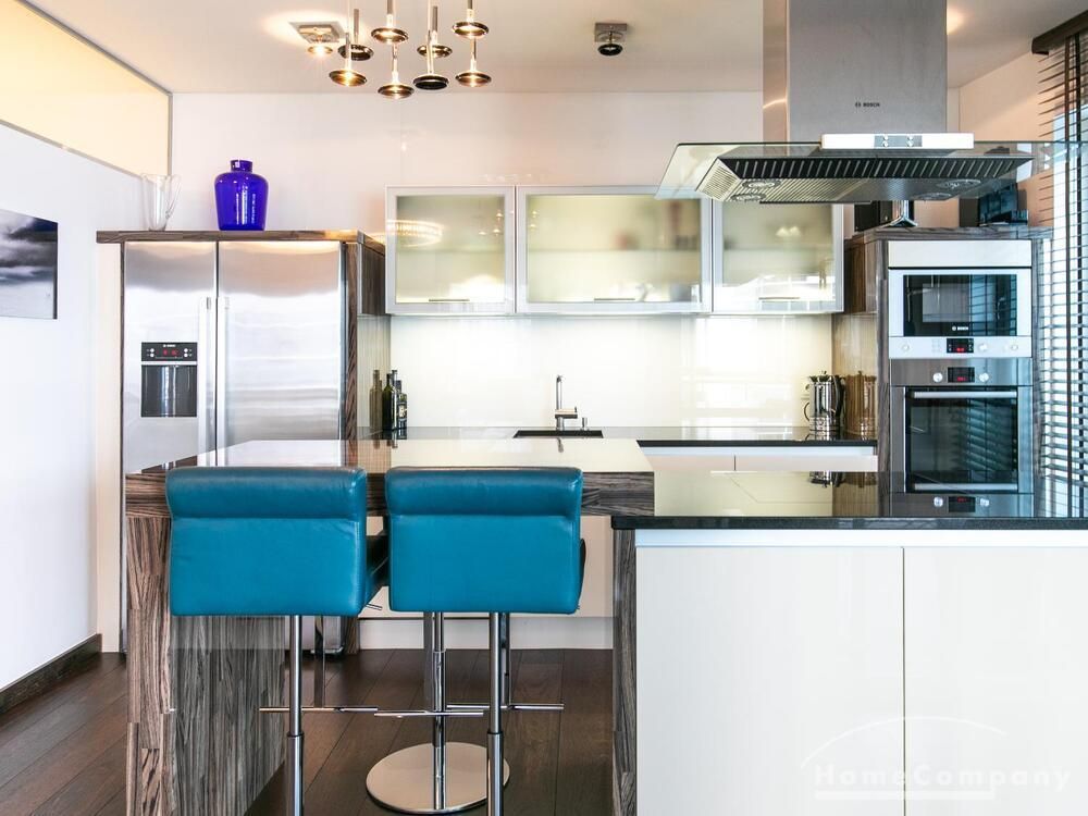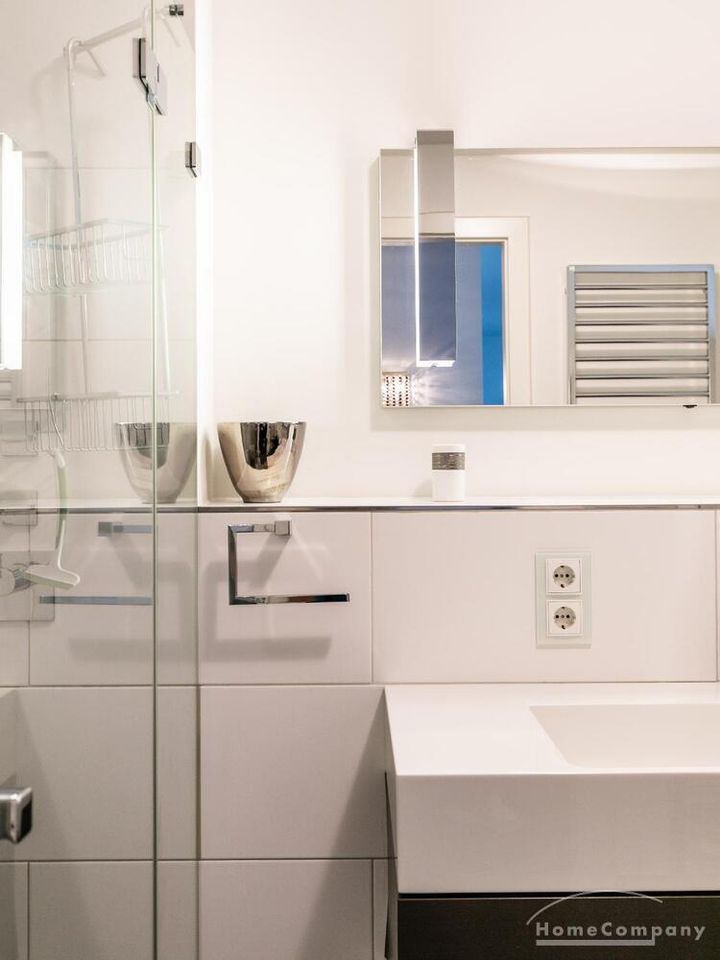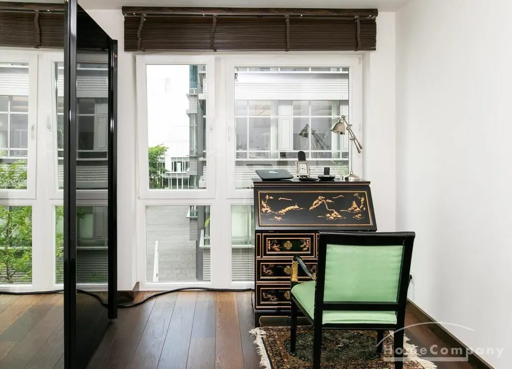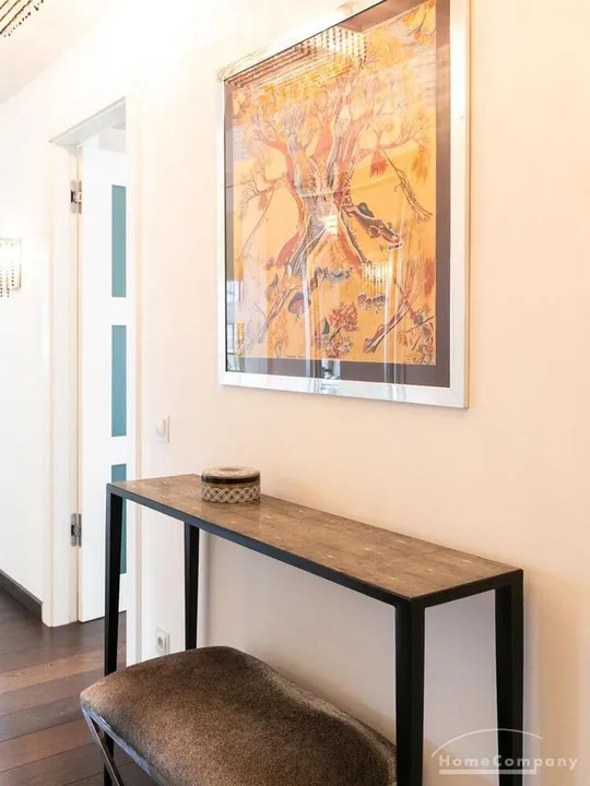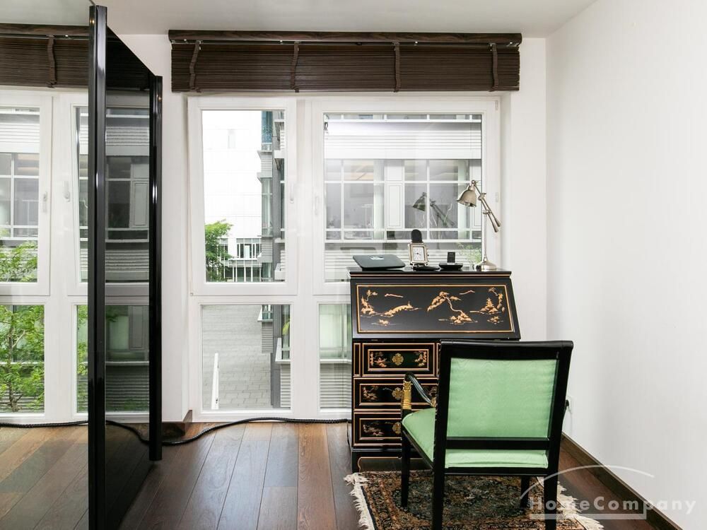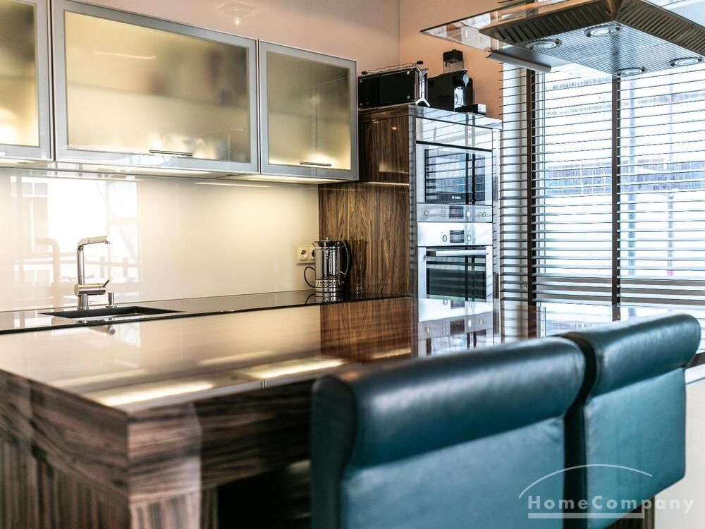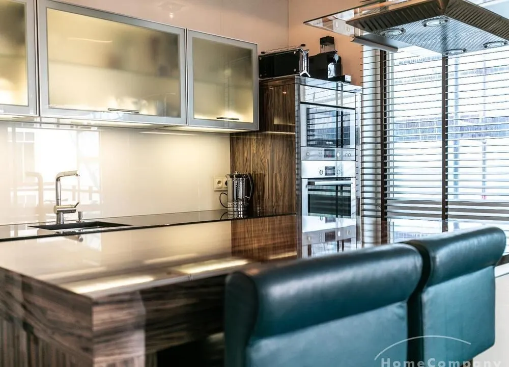 Elegante, modern eingerichtete 3-Zimmer Neubauwohnung mit West-Balkon in Hamburg-Hafencity. Die Wohnung hat ca. 86 qm Parkettboden und liegt in der 2. Etage mit Fahrstuhl. Von dort hat man einen schönen Blick auf den Museumshafen und die Grünfläche vom Sandtorpark. Zudem haben alle Fenster einen elektrischen Außensonnenschutz. Ein Tiefgaragenstellplatz ist im Mietpreis inklusive.