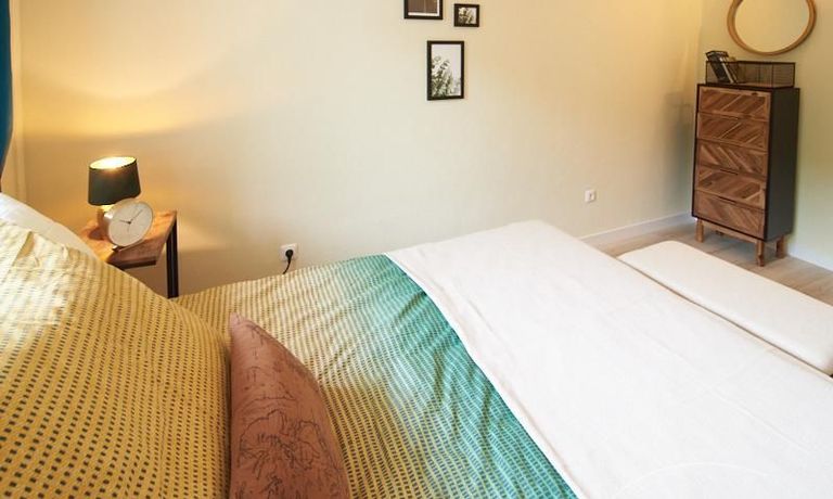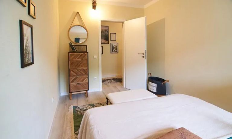 Eines der beiden Schlafzimmer ist mit einem 1,60 m breiten Boxspringbett, das andere mit einem 1,40 m breiten Polsterbett ausgestattet.