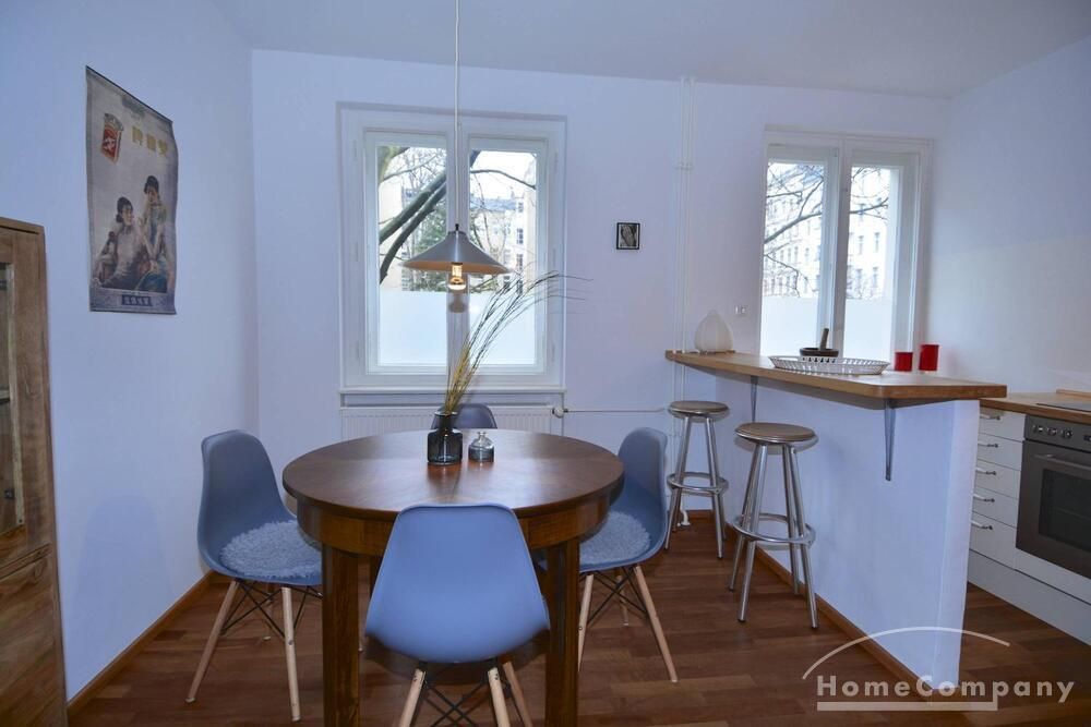 Die Wohnung befindet sich im beliebtem Graefekiez in Kreuzberg. Die stylishe, komfortable offene Küche ist vollausgestattet und bietet einen sympathischen, runden Art Deco-Esstisch. Das Wohnzimmer ist im dänischen Stil eingerichtet, mit einem Schlafsofa und einem TV/HiFi-Lowboard. Im Schlafzimmer befindet sich ein großes Bett, ein moderner Schrank, der ausreichend Platz für Kleidung bietet. Das Bad bietet eine Dusche und ein schönes Keramikwaschbecken.