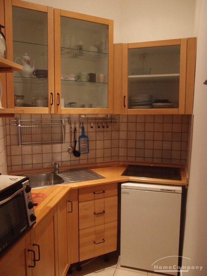 Möblierte Zwei-Zimmer-Wohnung mit Grünblick ind den Garten von allen Zimmern, sehr gute Lage in einer ruhigen Seitenstraße vom Ku-Damm, im beliebten und repräsentativem Halensee. Gartenhausetage mit Grünblick, Parkett und Kachelboden, Holzdielen im Flur und in beiden Zimmern, gepflegtes Duschbad mit Waschmaschine. Die Küche ist mit Gasherd, Spülmaschine Waschmaschine und Mikrowelle ausgestattet und stellt sämtliche Kochutensilien sowie Geschirr und Gläser bereit. Im Wohnzimmer befinden sich Fernseher (Kabel), Sofa und Schreibtisch, Wifi ist vorhanden, Telefon ist
