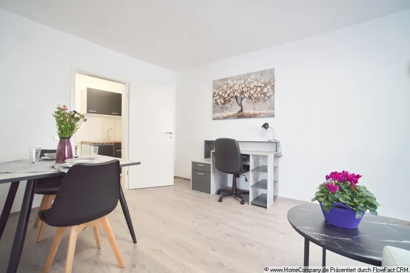 Diese moderne und stilvoll eingerichtete Wohnung in Dortmund-Lütgendortmund bietet den idealen Wohnraum für Singles oder Berufspendler, die Wert auf Komfort und eine durchdachte Raumaufteilung legen. Es handelt sich um einen Erstbezug, so dass alle Möbel und Einrichtungsgegenstände neu und unbenutzt sind. Die ca. 40 qm große Wohnung ist optimal geschnitten und bietet alles, was man zum Wohlfühlen benötigt. Über den Eingangsflur erreicht man auf der rechten Seite das Badezimmer mit Dusche und auf der rechten Seite die Küche. Weiter kommt in den Wohn- und Schlafbereich mit offener Küche. Dieser Raum ist durchdacht. Der monatliche Mietpreis bei einer Person beträgt: 795,- €. Bei einer Anmietung mit zwei Personen erhöht sich der Mietpreis um 50,- €. Dieser Preis beinhaltet sämtliche Betriebkosten, Heizkosten, Strom und eine Internet-Flatrate. Die Kaution beträgt eine Monatsmiete. Die Endreinigung wird nach Aufwand berechnet.