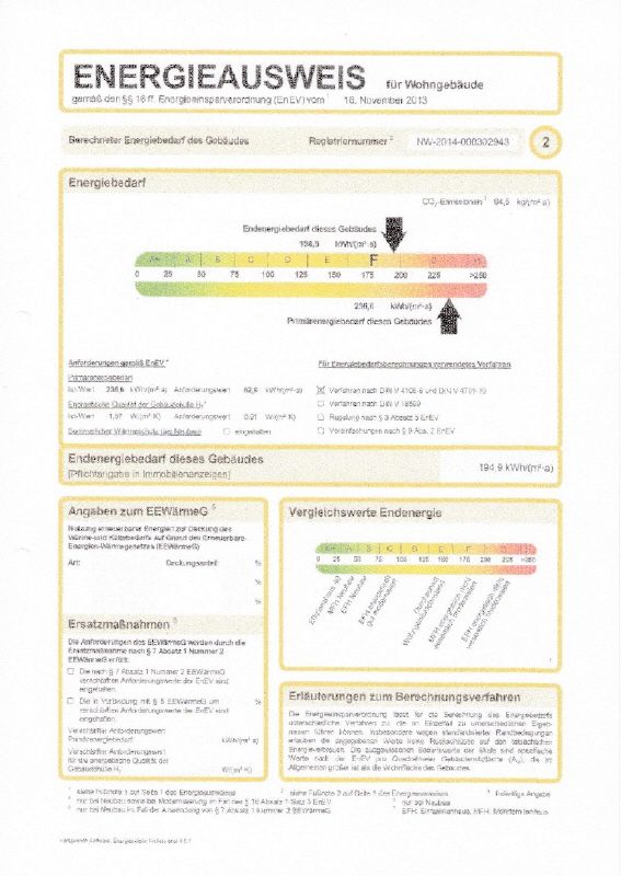 Angaben zum Energieausweis: Baujahr des Hauses: 1950, Energiebedarfsausweis Wert: 194,9. Energieträger: Fernwärme. Energieeffizienzklasse F.