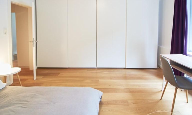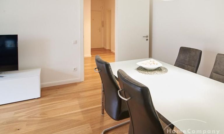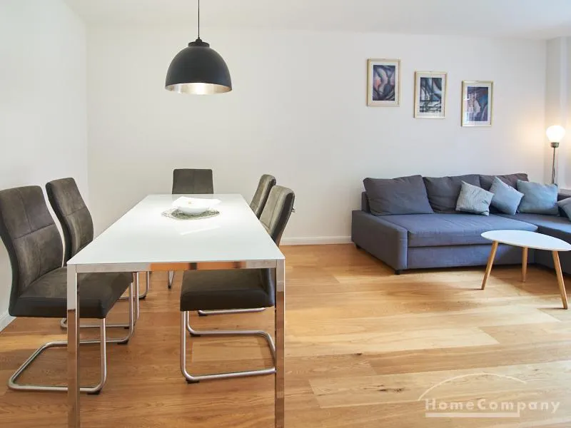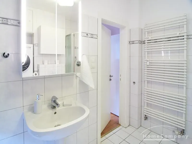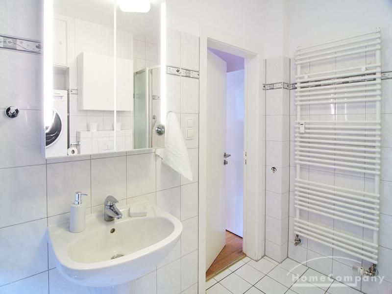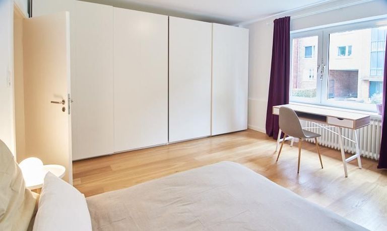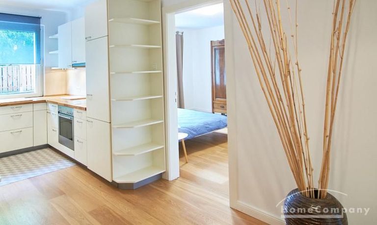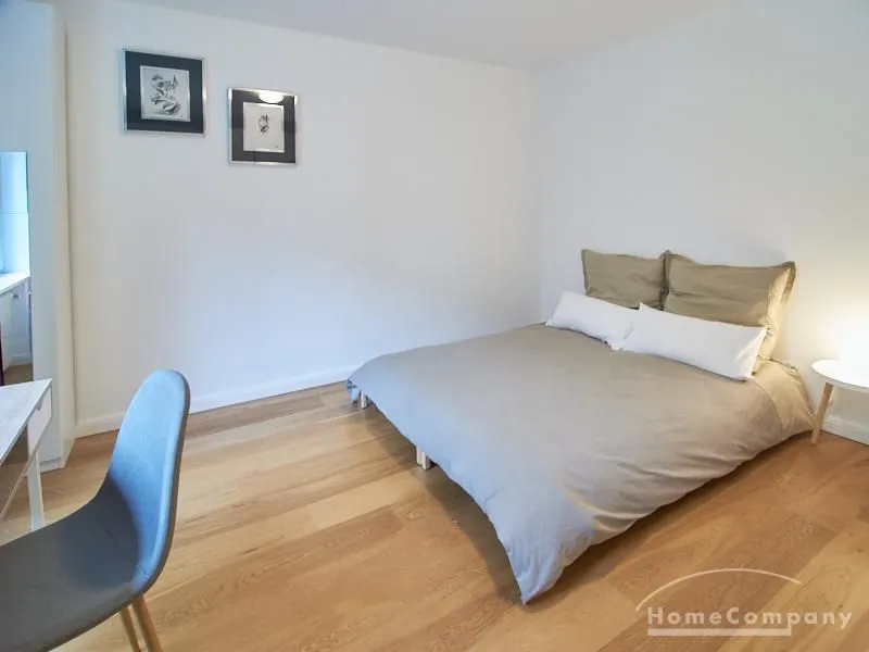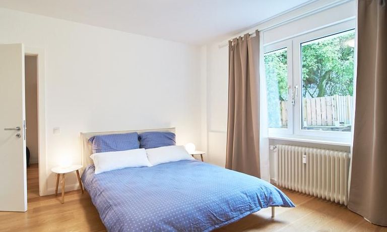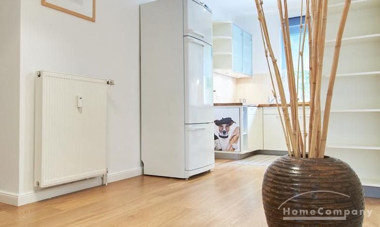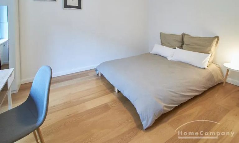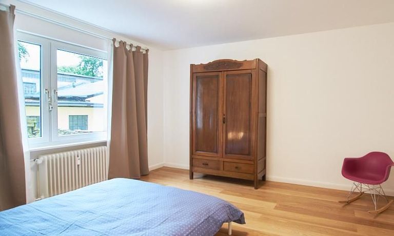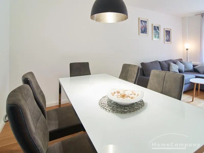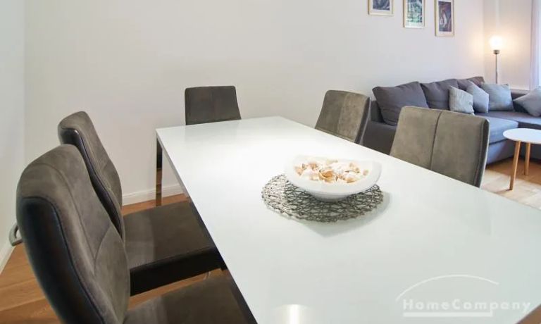 Die gepflegte Wohnung mit 2 Schlafzimmern, zwei in weiß gehaltenen Bädern, Wohn- Esszimmer, Küche, Balkon und Abstellraum befindet sich im beliebten Hamburg Eimsbüttel. In beiden Schlafzimmern befindet sich ein 1,60 m großes Bett; in einem der Schlafzimmer ist ein 4 m breiter Kleiderschrank, in dem anderen ein Bücherregal mit Fronttür. Der großzügige Wohnbereich mit zwei großen Fenstern bietet Platz zum gemütlichen Beisammensein und ist zusätzlich mit einem Esstisch eingerichtet. Die Einbauküche mit einem großen Kühl- und Gefrierkombigerät und Geschirrspülmaschine ist komplett ausgestattet. Eines der Bäder ist ein Vollbad, das zweite ist ein Duschbad mit halbrunder Duschkabine, Handtuchheizung, Waschmaschine, Wäschetrockner und großen Fenster zum Innenhof. Der Südbalkon ist mit einem Tisch und zwei Stühlen eingerichtet und auf dem begrünten Gemeinschafts-Innenhof befindet sich ein Gartenset mit Sofa, zwei Sesseln und einem Tisch sowie Kinderspielgeräten. Im Haus gibt es einen Trockenraum und einen Fahrradkeller.