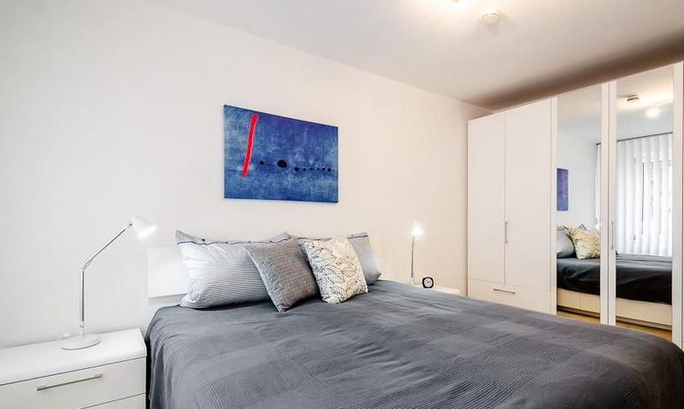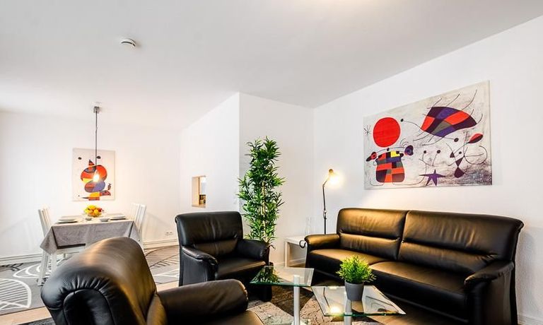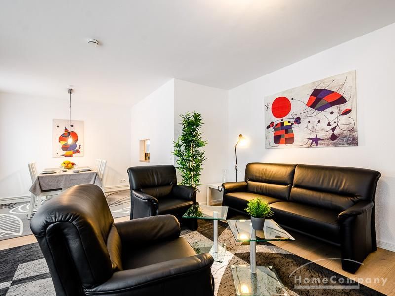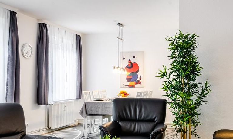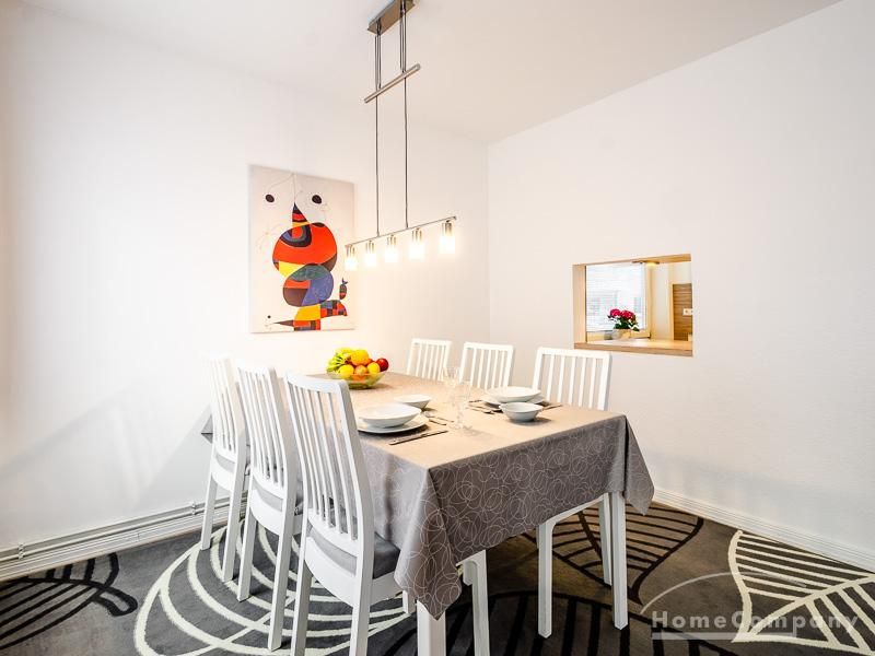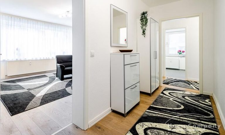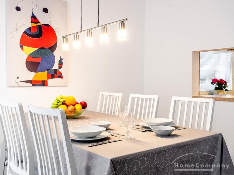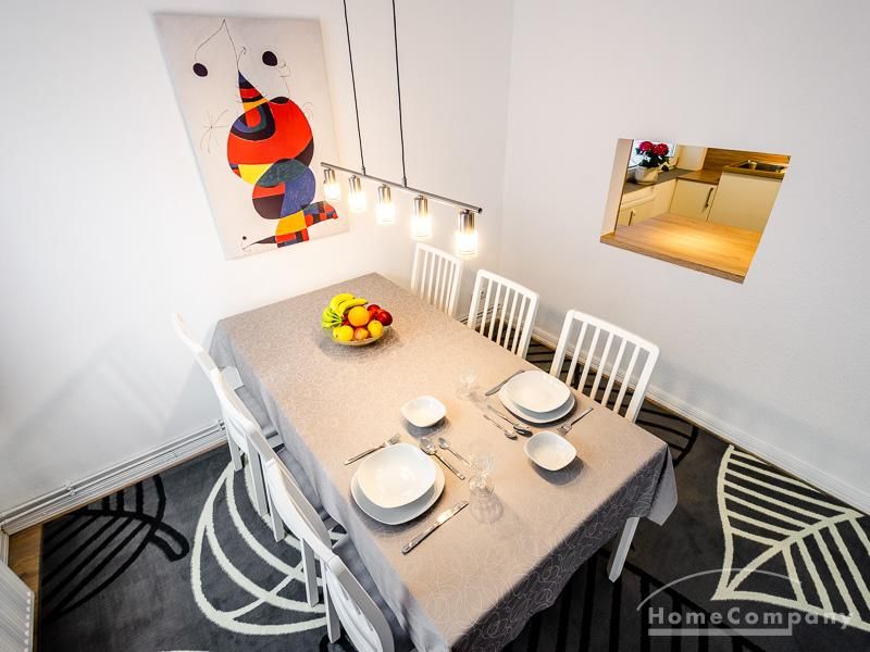 Die Wohnung hat 3 Zimmer und ist ca. 80 m² groß. Das Wohnzimmer ist mit einem 4K UHD Fernseher 65 Zoll, Esstisch mit 6 Stühlen, Sitzgruppe und Wohnzimmerschrank ausgestattet. Vom Essbereich gibt es eine Durchreiche zur Küche.