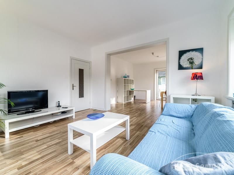 Schöne Wohnung im 2. Obergeschoss eines Altbaus. Sie verfügt über ein großes Wohnzimmer, welches in ein weiteres Zimmer (Esszimmer) übergeht. Im Schlafzimmer steht ein Doppelbett und ein großer Kleiderschrank zur Verfügung. Ein weiteres Zimmer kann als Gästezimmer genutzt werden. Es sind zwei separate Schlafmöglichkeiten vorhanden. Die Wohnung eignet sich sehr gut für 2 Kollegen.