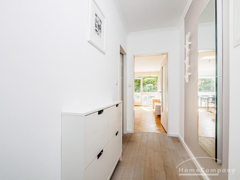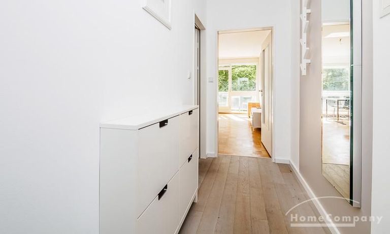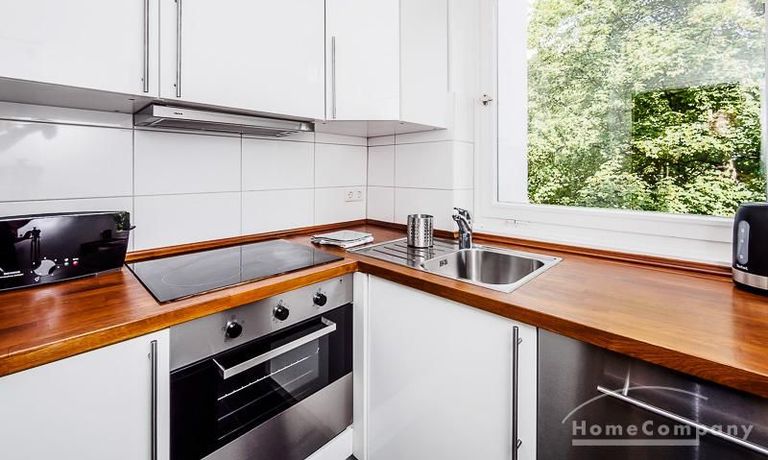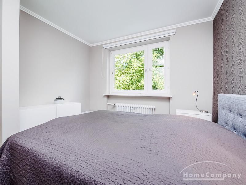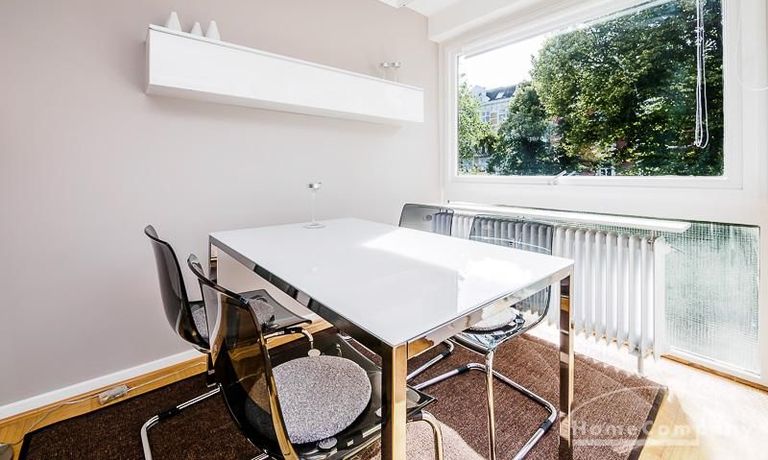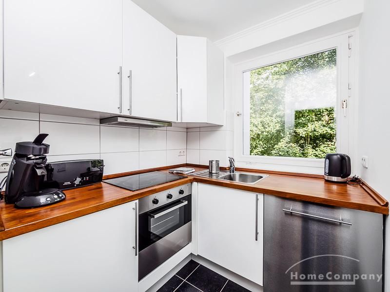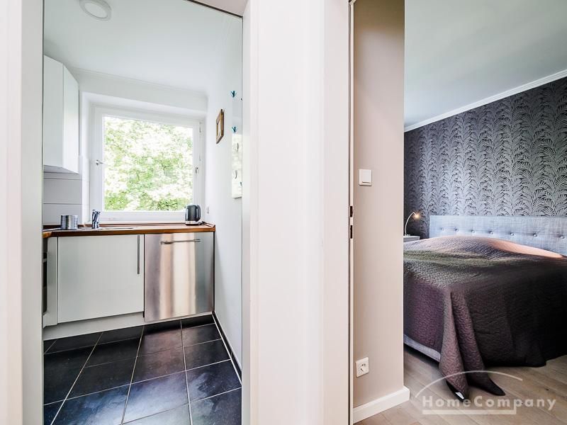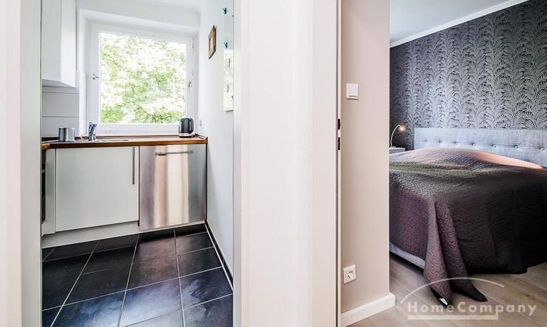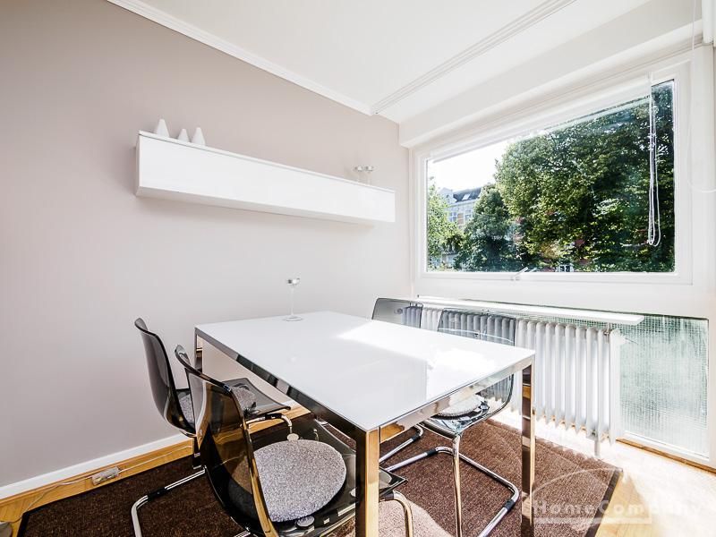Charmante Wohnung in bester Lage in Harvestehude. Die modern eingerichtete Wohnung verfügt über ein großes Wohnzimmer mit komfortablem Sofabereich mit Recamière, großem Flatscreen TV und einem Essbereich für 4 Personen. Der vorgelagerte Balkon ist mit einem Tisch und zwei Stühlen ausgestattet. Das Schlafzimmer ist mit einem 1,60 breiten Doppelbett und viel Schrankfläche ausgestattet und zum ruhigen Hinterhof orientiert. Lichtdichte Rollos tragen zusätzlich zu ungestörtem Schlafkomfort bei. Das Mobiltelefon kann direkt auf dem Nachttisch im integrierten Ladebereich kabellos geladen werden. Das Duschbad ist hell gefliest. Im Flur steht ein farblich abgesetzter Garderobenbereich zur Verfügung. Im Keller steht Waschmaschinen zur Verfügung.