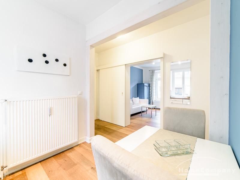 Zentral zwischen Messe und Uni gelegenes Apartment im Hochparterre. Das Apartment verfügt über eine zum Essbereich und zum Flur hin offene Küche. Das Wohn-/ Schlafzimmer ist durch eine Schiebetür verbunden. Das Badezimmer wurde in 2017 saniert und mit modernen Wandpanels ausgestattet. Das Apartment ist mit einem 1,40 breiten Bett ausgestattet, das durch einen Raumteiler vom Couchbereich abgeteilt ist. In einem Einbauschrank im Flur steht reichlich Stauraum zur Verfügung.