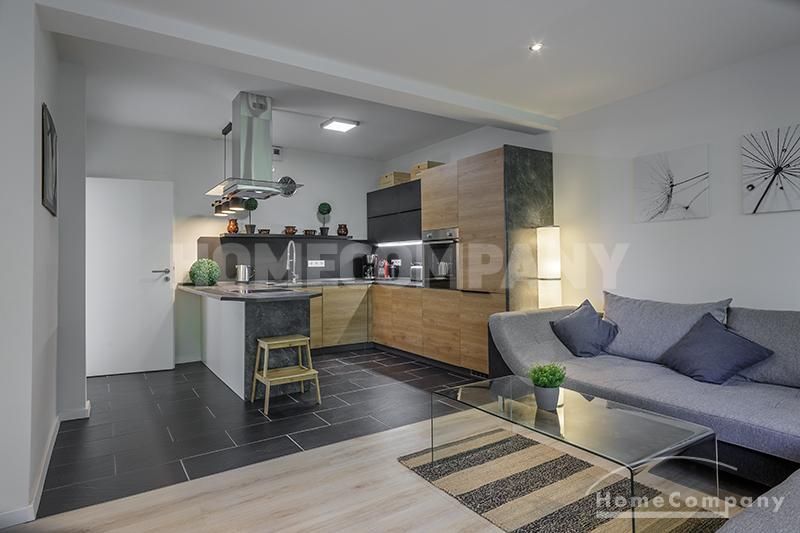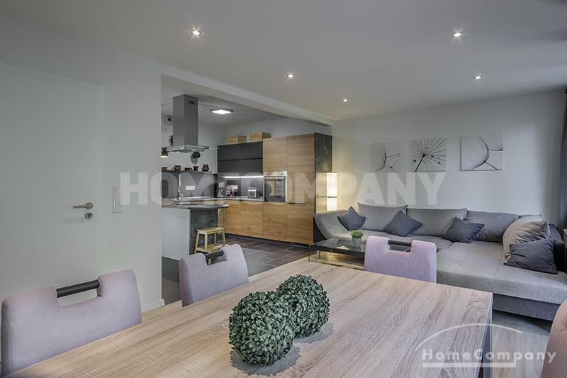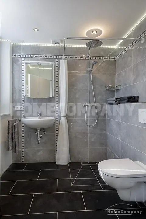 Im Erdgeschoss befinden sich der geräumige, moderne Wohnbereich mit offener Küche, sowie ein Essbreich für bis zu 6 Personen. Die Küche ist sehr ansprechend designt und mit allem ausgestattet was man täglich benötigt, z.B. Geschirrspüler, Ofen, Wasserkocher, Kaffeemaschine. Modern gefliestes Badezimmer mit bodentiefer Dusche.