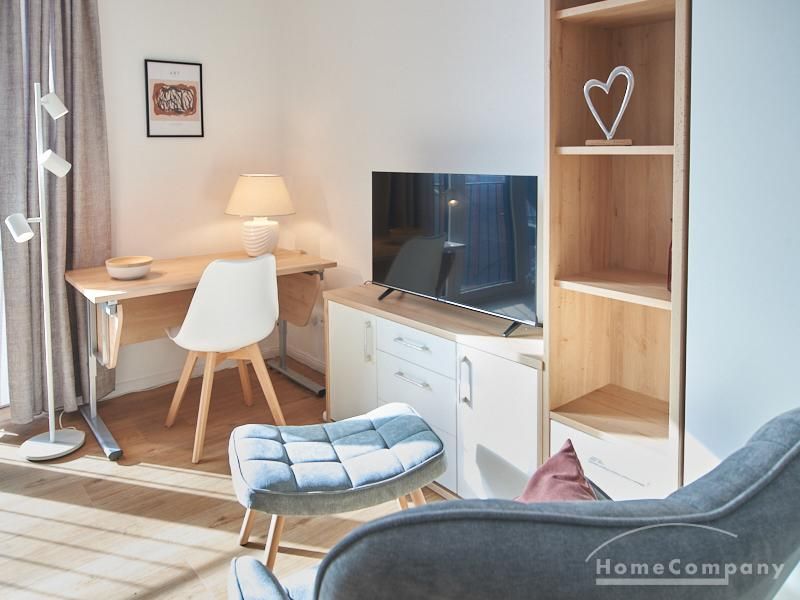 In 2023 komplett neu eingerichtetes Single Apartment in ruhiger Lage nördlich angrenzend an das Schanzenviertel; ausgestattet mit bodentiefen Fenstern und einem Designboden in Holzoptik. Die Pantryküche verfügt über 2 Kochfelder, einen Kühl- Gefrierschrank, Geschirrspüler, einen Multifunktionsbackofen (Kombigerät Umluft Backofen / Mikrowelle). Die Möblierung ist in lellen Tönen gehalten. Im Wohnbereich befindet sich ein kleiner Bereich für das Homeoffice, ein Esstisch mit Stühlen, ein Sessel, Kleiderschrank, internetfähiges TV und ein 1 m breites Bett. In der Wohnung steht 200MBit schnelles Internet zur Verfügung. Das Apartment ist mit einem Wasch-Trockner ausgestattet. Ein separater Abstellraum bietet Stauraum für Wäscheständer, Bügelbrett Reinigungsmittel & Co. Im Hinterhof steht ein Gemeinschaftsgarten und ein überdachter Abstellraum für Fahrräder zur Verfügung.