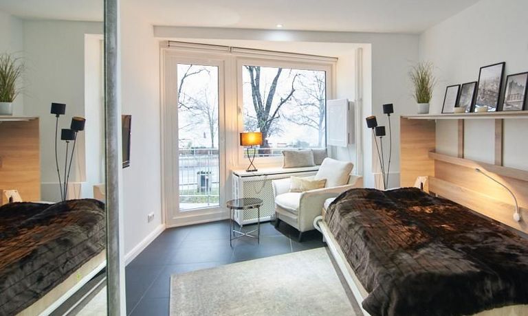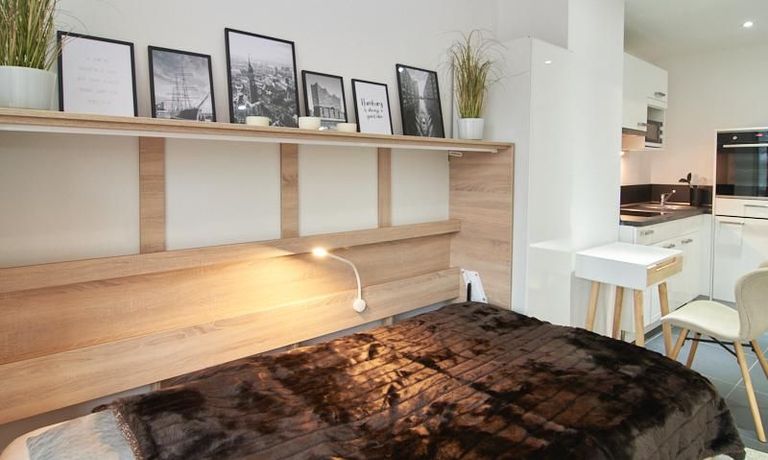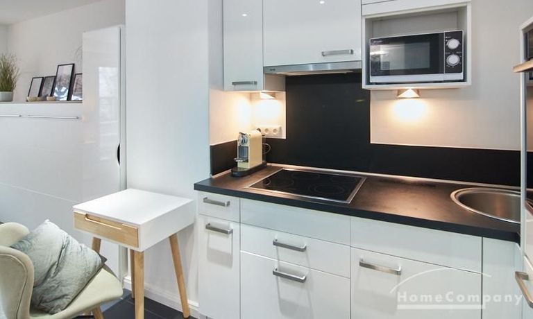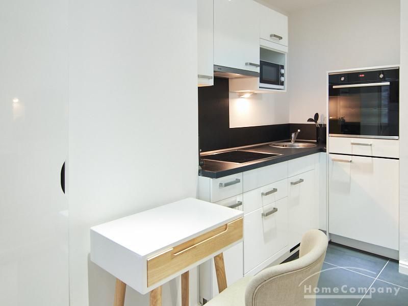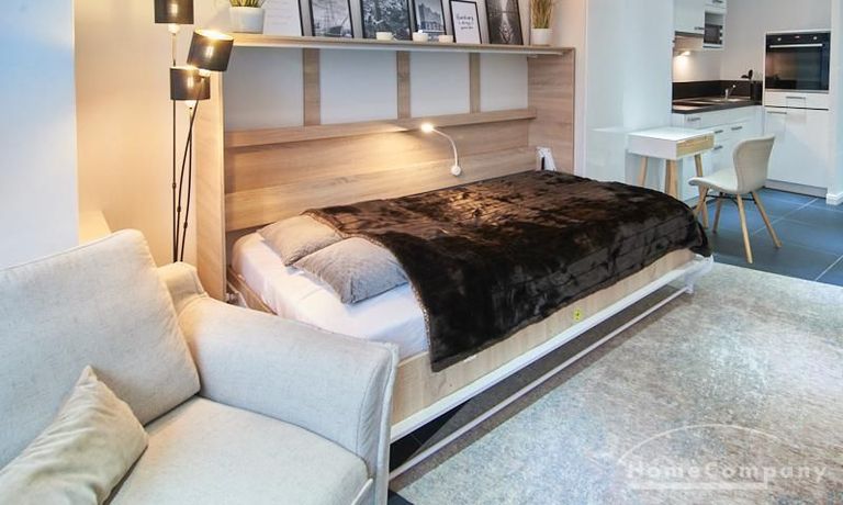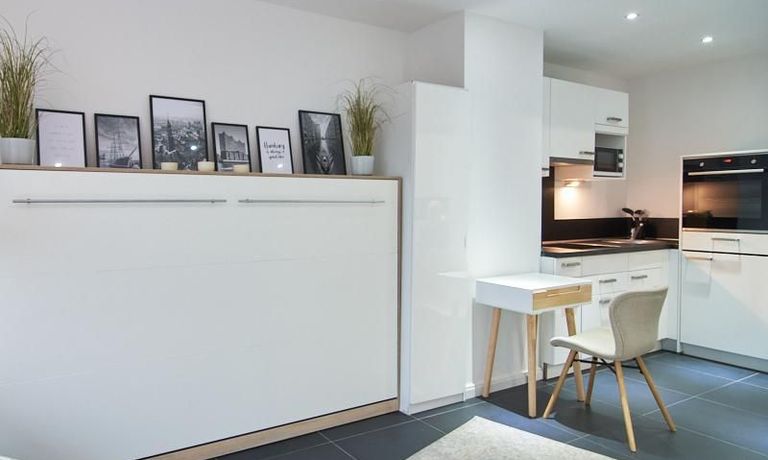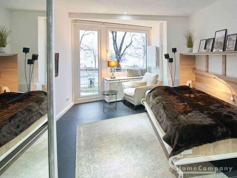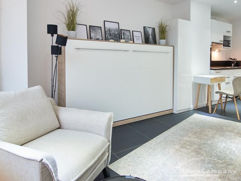 Perfekt ausgestattetes Apartment direkt an der Alster. Das Apartment wurde in 2022 komplett modernisiert und möbliert. Durch die kluge Gestaltung des Grundrisses wird eine optimale Raumnutzung erreicht. Die sehr gut ausgestattete Einbauküche öffnet sich zum Wohn- Schlafbereich. Hier steht ein komfortables, 1,20 breites Schrankbett zur Verfügung, welches bei Bedarf zu einem Sideboard zusammengeklappt werden kann.